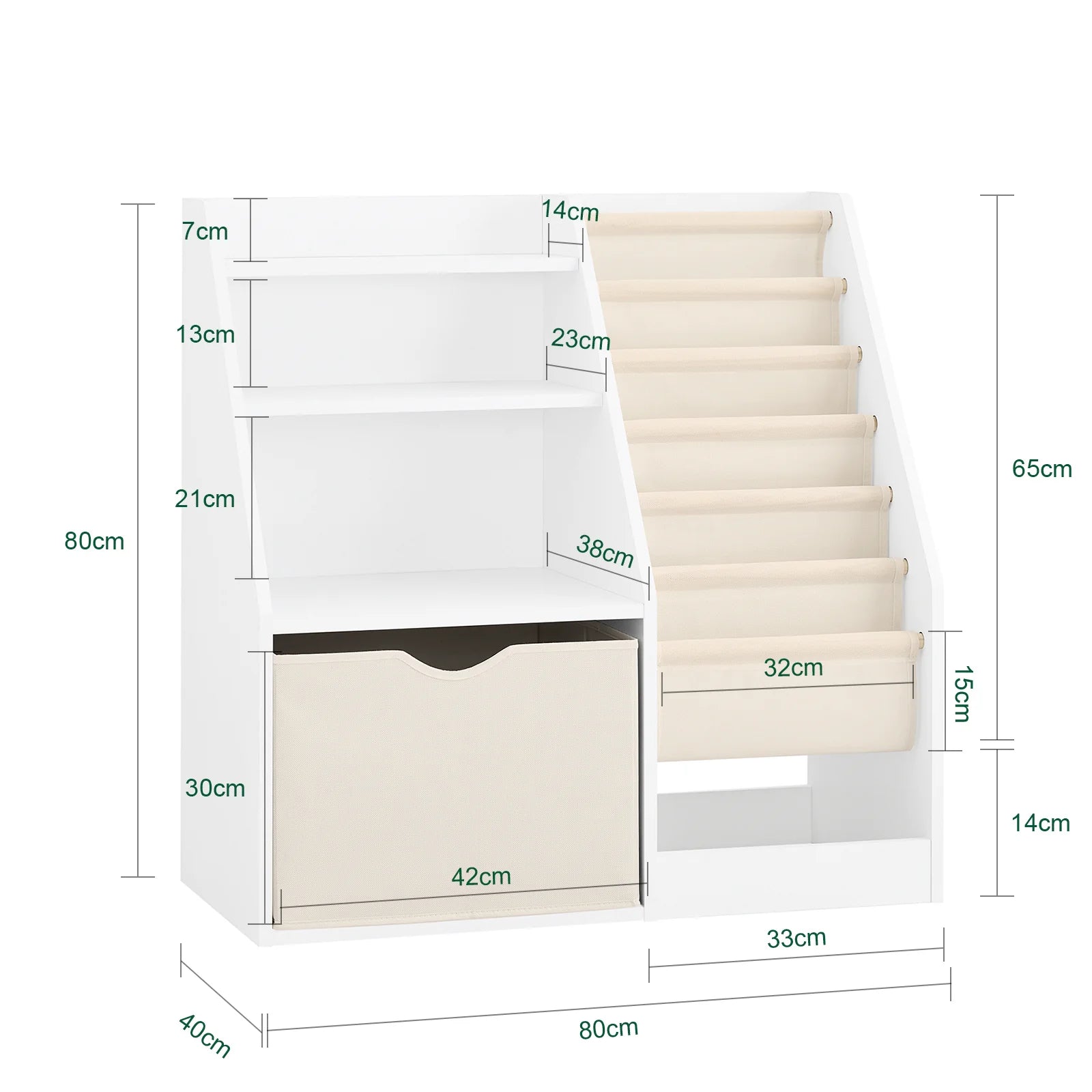 Reolens enkle og moderne design passer perfekt ind i ethvert børneværelse, uanset indretningsstil. Den hjælper med at holde orden og skaber et indbydende miljø, der opmuntrer til leg og læring.