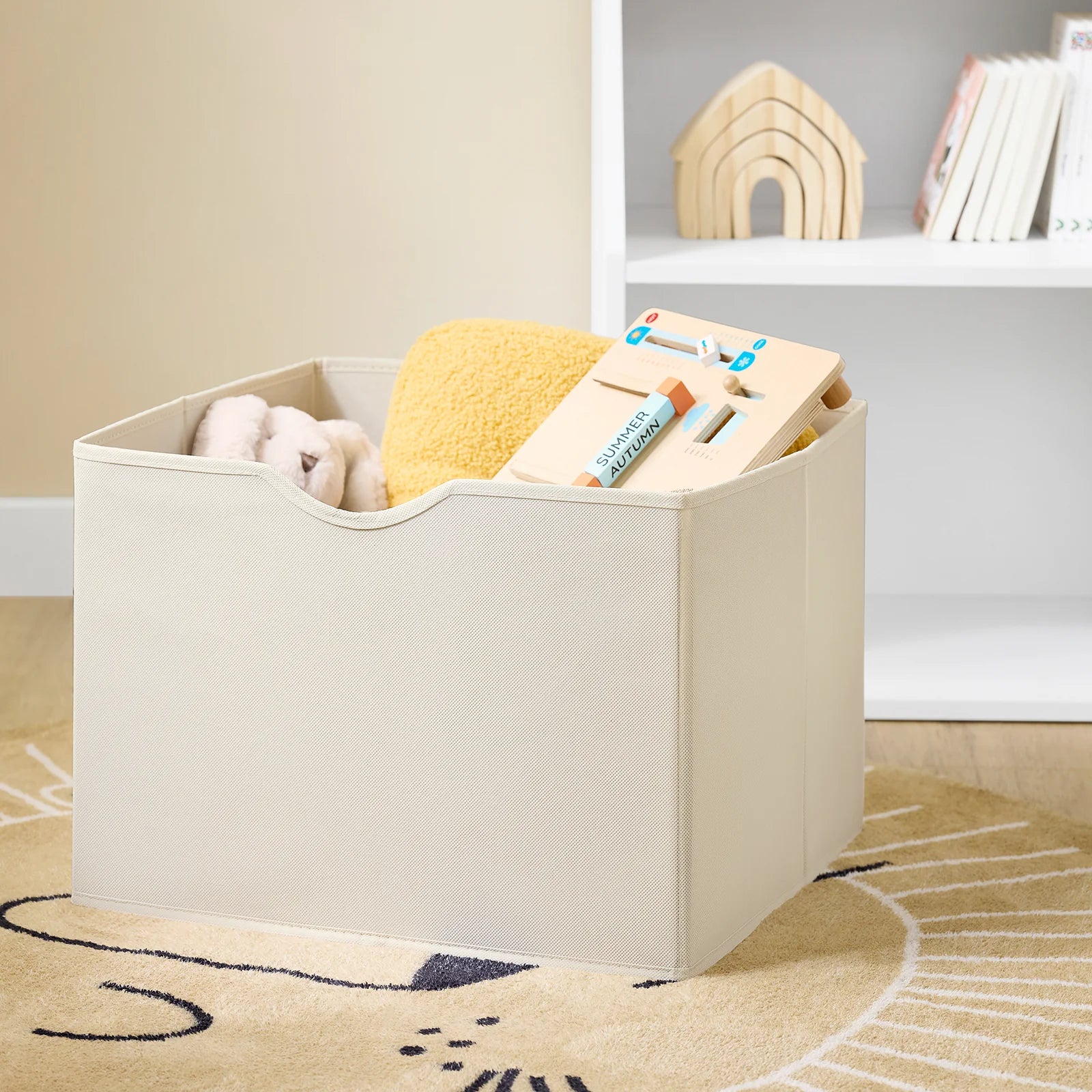 Denne funktionelle og børnevenlige reol er designet med inspiration fra Montessori-metoden. Den kombinerer en stor opbevaringskapacitet med en højde, der er perfekt tilpasset små børn. Med tre åbne niveauer, praktiske stofkurve og et rummeligt nederste rum får børnene frihed til selv at vælge og opbevare deres bøger og legetøj.