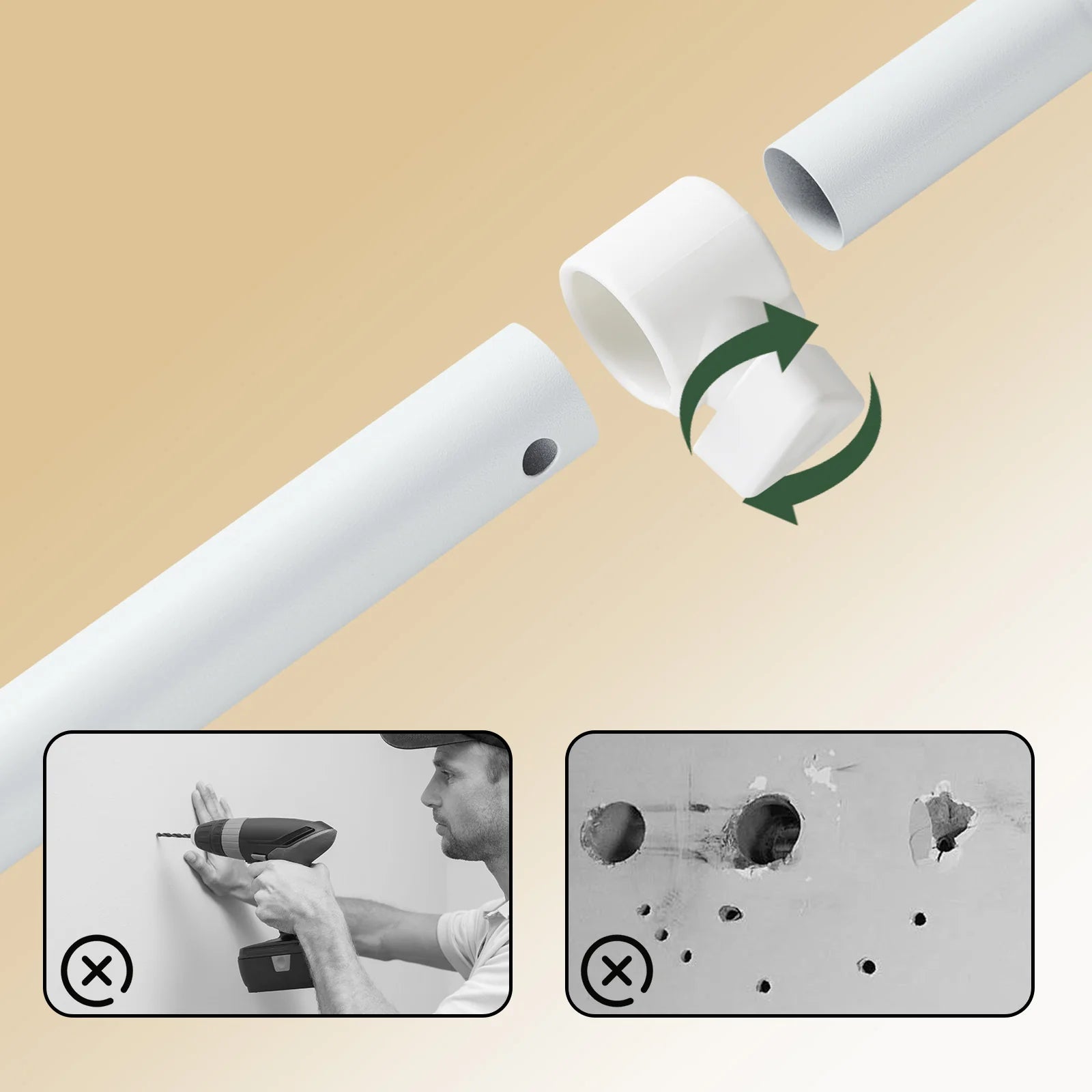 Perfekt løsning til lejelejligheder eller rum, hvor du vil undgå vægskader