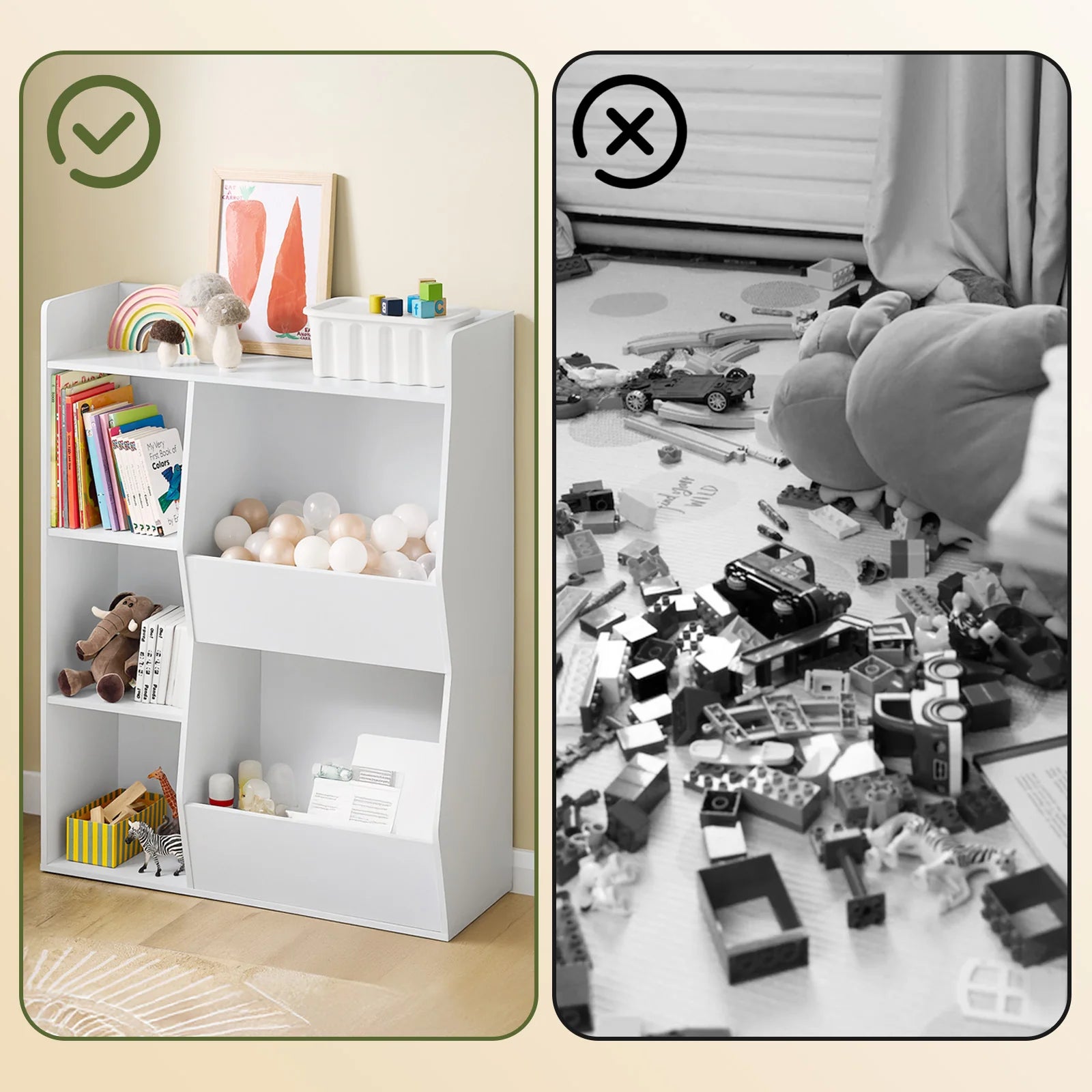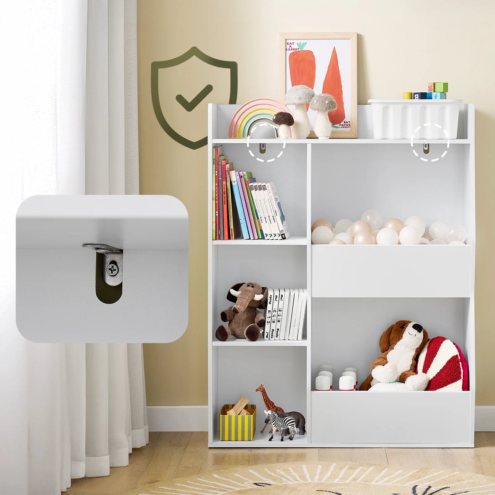 Perfekt til at støtte barnets selvstændighed og skabe et organiseret og sikkert legeområde i børneværelset!
