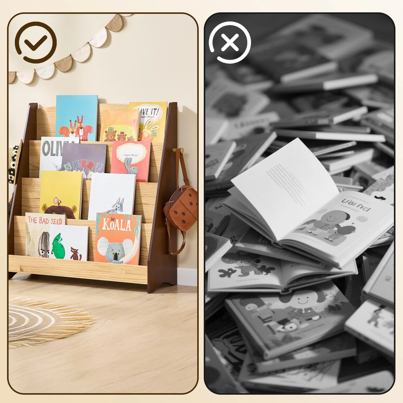 Skab orden og organiseringen i børneværelset med denne smarte Montessori-bogreol i fyrretræ. Med 4 rummelige rum og 2 praktiske kroge er den ideel til opbevaring af bøger, legetøj og små beholdere, og den passer perfekt i ethvert hjørne som en vertikal opbevaringsløsning.
