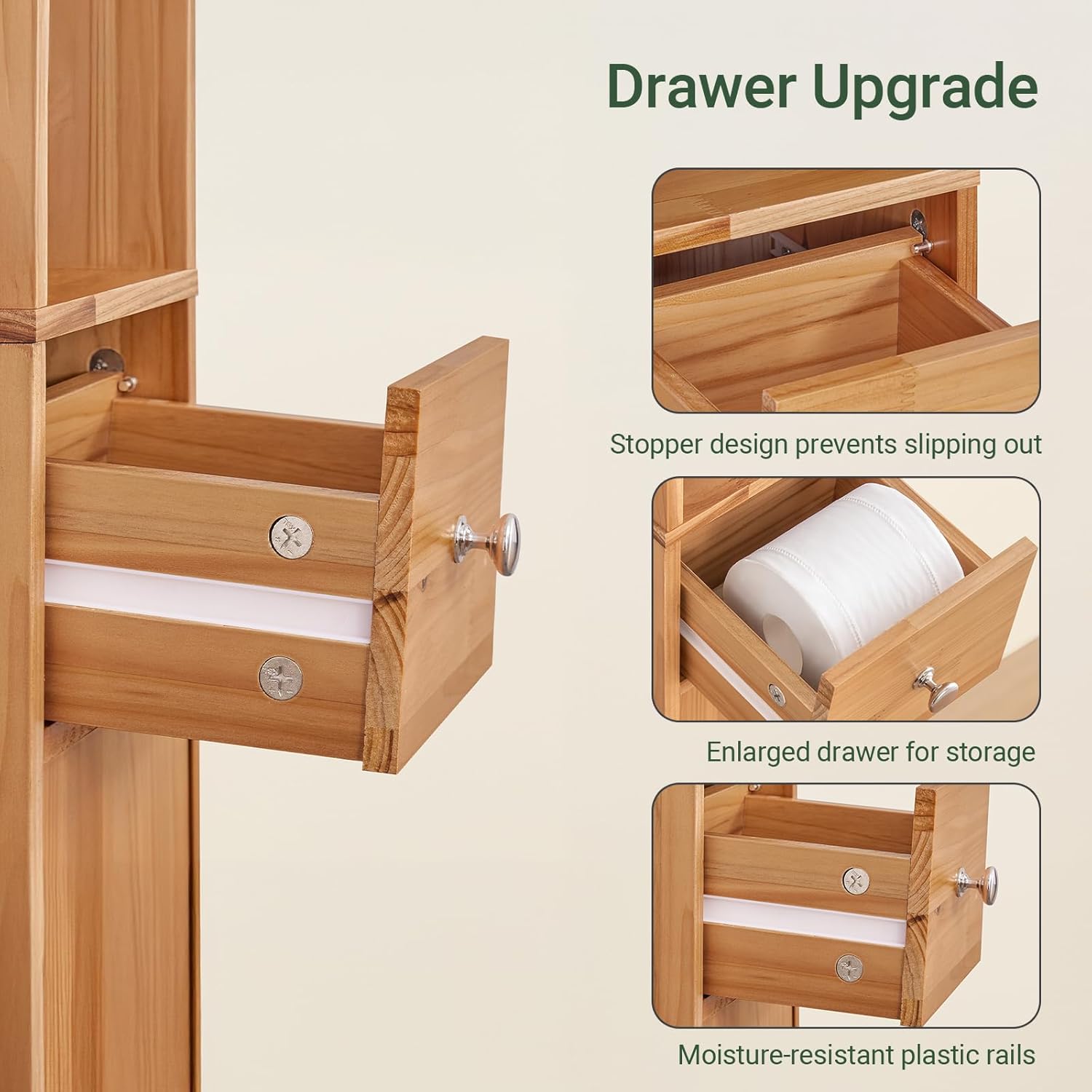 Dette slanke badeværelsesskab er den perfekte løsning, der kombinerer elegant design med optimal udnyttelse af pladsen. Med en bredde på kun 20 cm passer det perfekt ind i små badeværelser, gange, soveværelser og stuer.