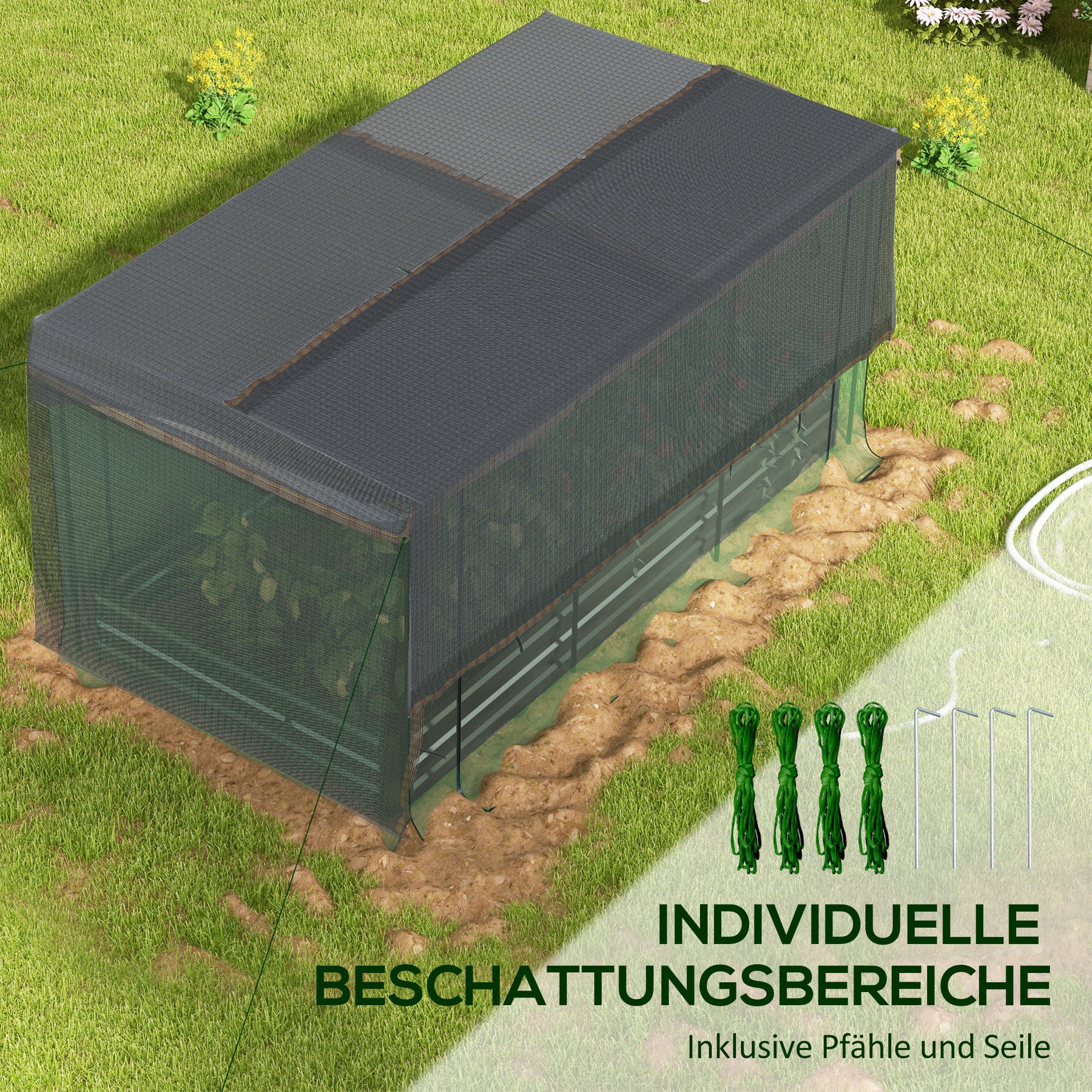 Opdag det alsidige højbede med plantebeskyttelsesnet og solbeskyttelse. Nettet holder fugle og smådyr ude, samtidig med at det tillader sollys og regn at nå dine planter. Solbeskyttelsesfilmen blokerer 60% af sollyset og beskytter planterne mod udtørring.