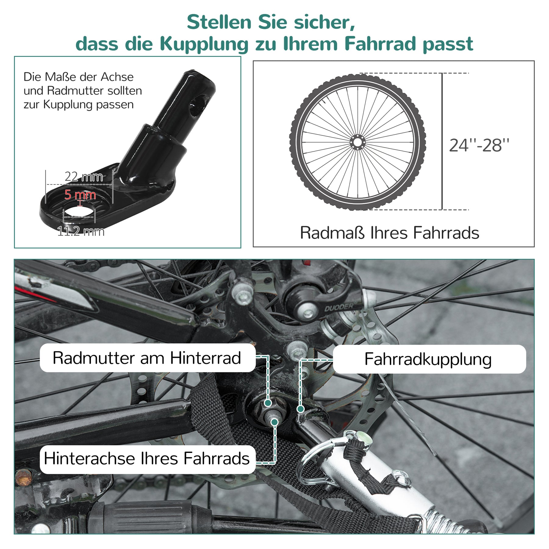 • BEMÆRK: Anhængeren er egnet til cykler fra 24" op til 28".