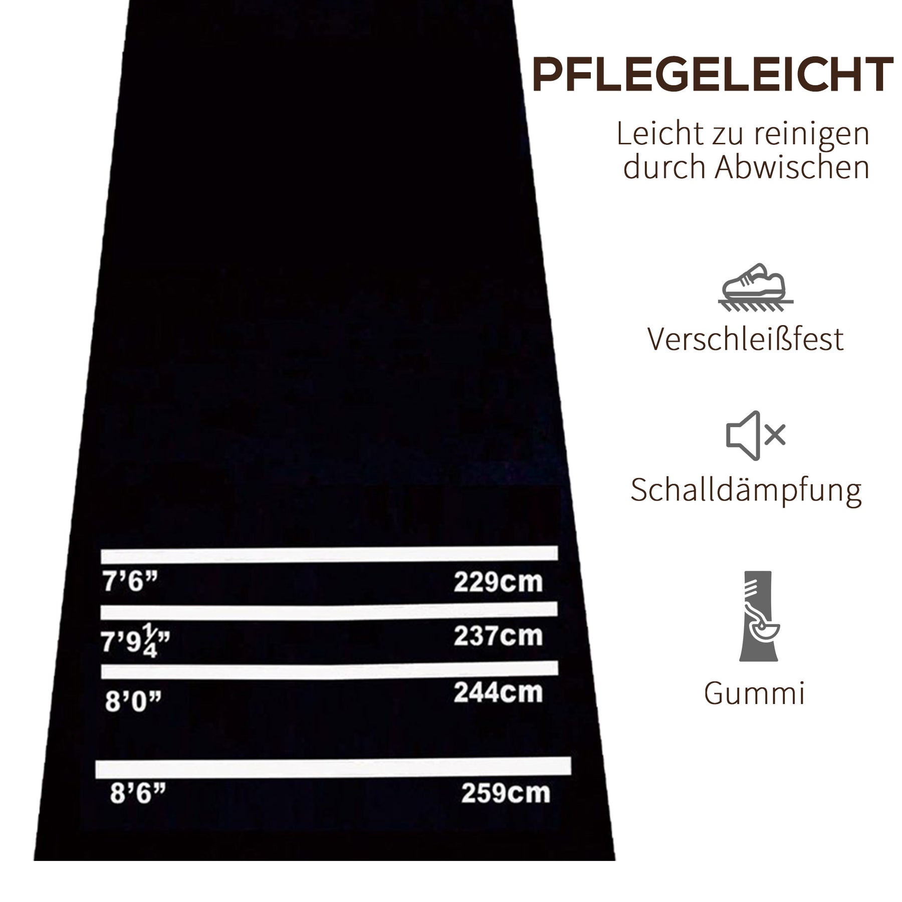 Gør din aften hjemme til en uforglemmelig pub-oplevelse med denne dartmåtte. Spil dart på autentiske turneringsdistancer, og nyd godt af den skridsikre gummibelægning, der sikrer et solidt greb. Måtten er ikke kun beskyttende for dit gulv, men kan også anvendes som yogamåtte, når du ruller den sammen.