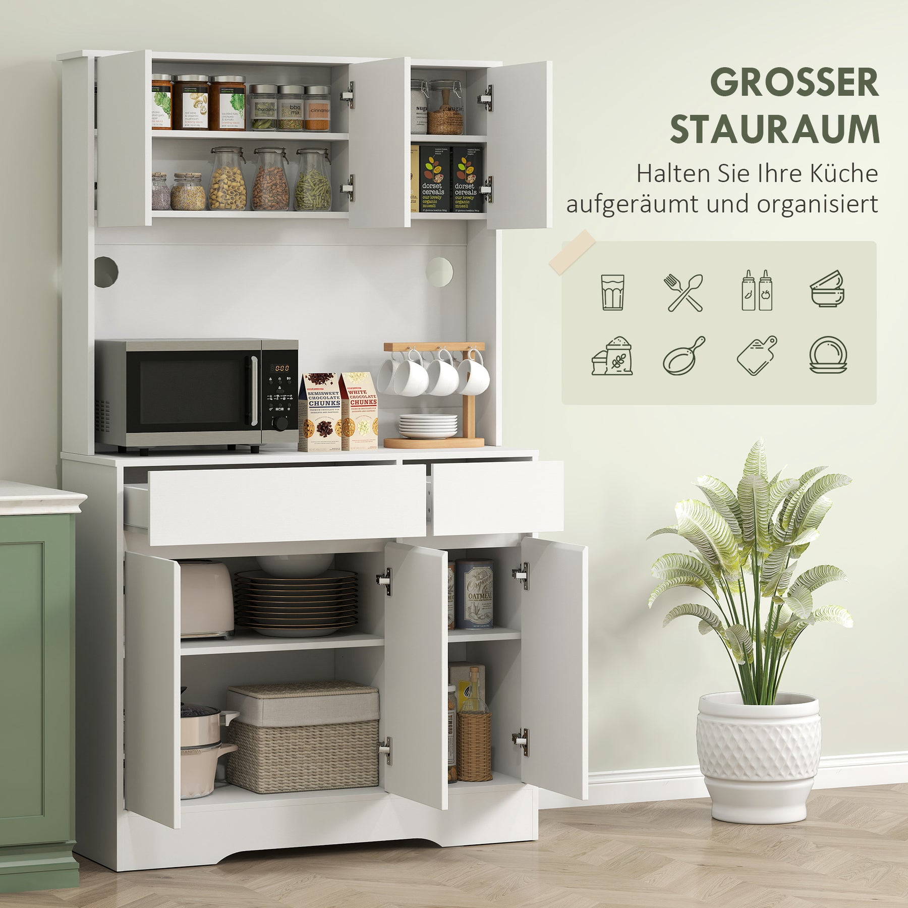 Dette køkkenskab er designet til at holde dit hjem organiseret med en åben arbejdsflade, skuffer og justerbare hylder. Det moderne design tilføjer en friskhed til din indretning og skaber et varmt miljø til dyrebare øjeblikke med dine kære. Vitrineskabet giver rigelig opbevaringsplads, og den åbne arbejdsflade er ideel til køkkenapparater som blendere eller kaffemaskiner.