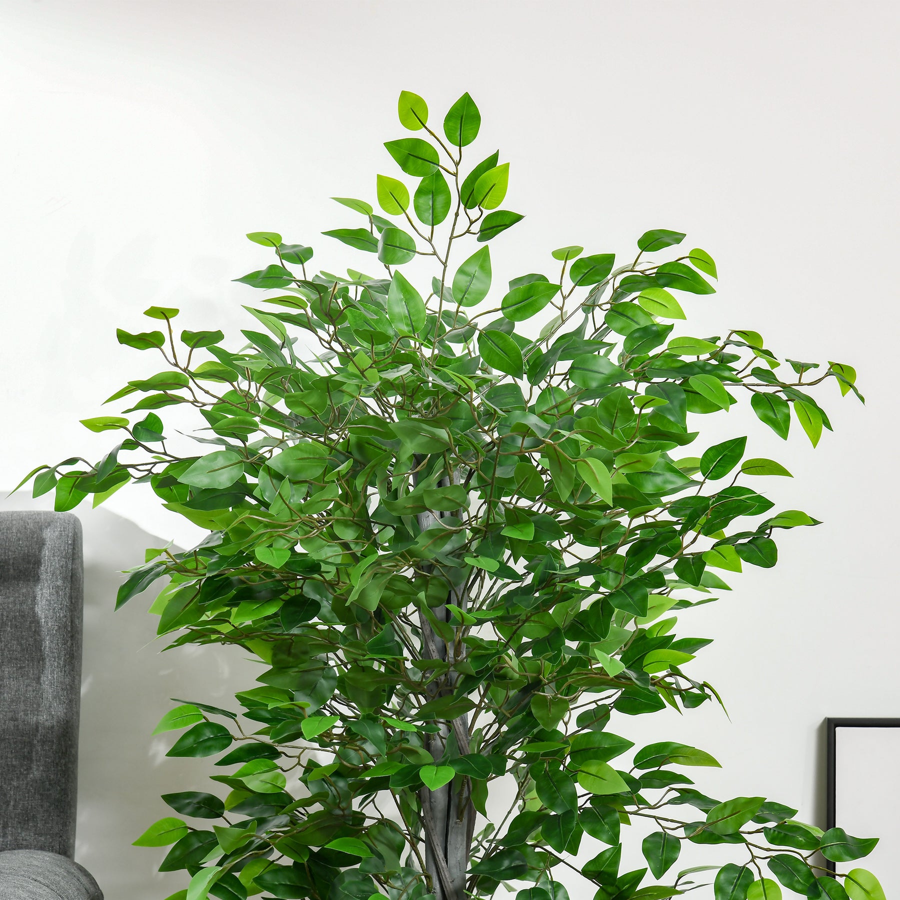 De naturtro blade liver ethvert rum op og ligner præcis de ægte. Udstyret med en cementfyldt potte står den stabilt på ethvert sted.