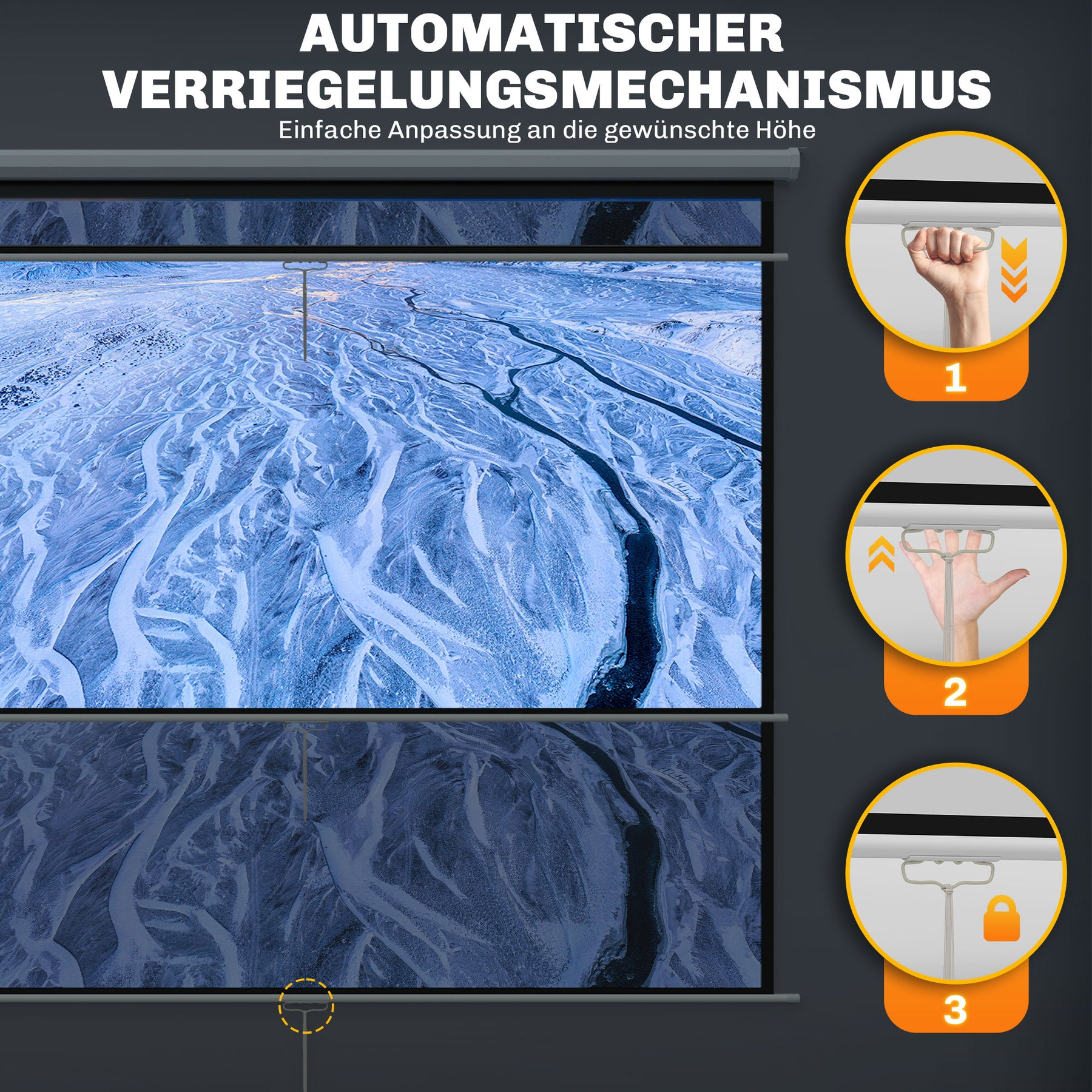 • Høj kvalitet, matteret, sammenrullelig projektionsoverflade, krølfri og nem at rengøre