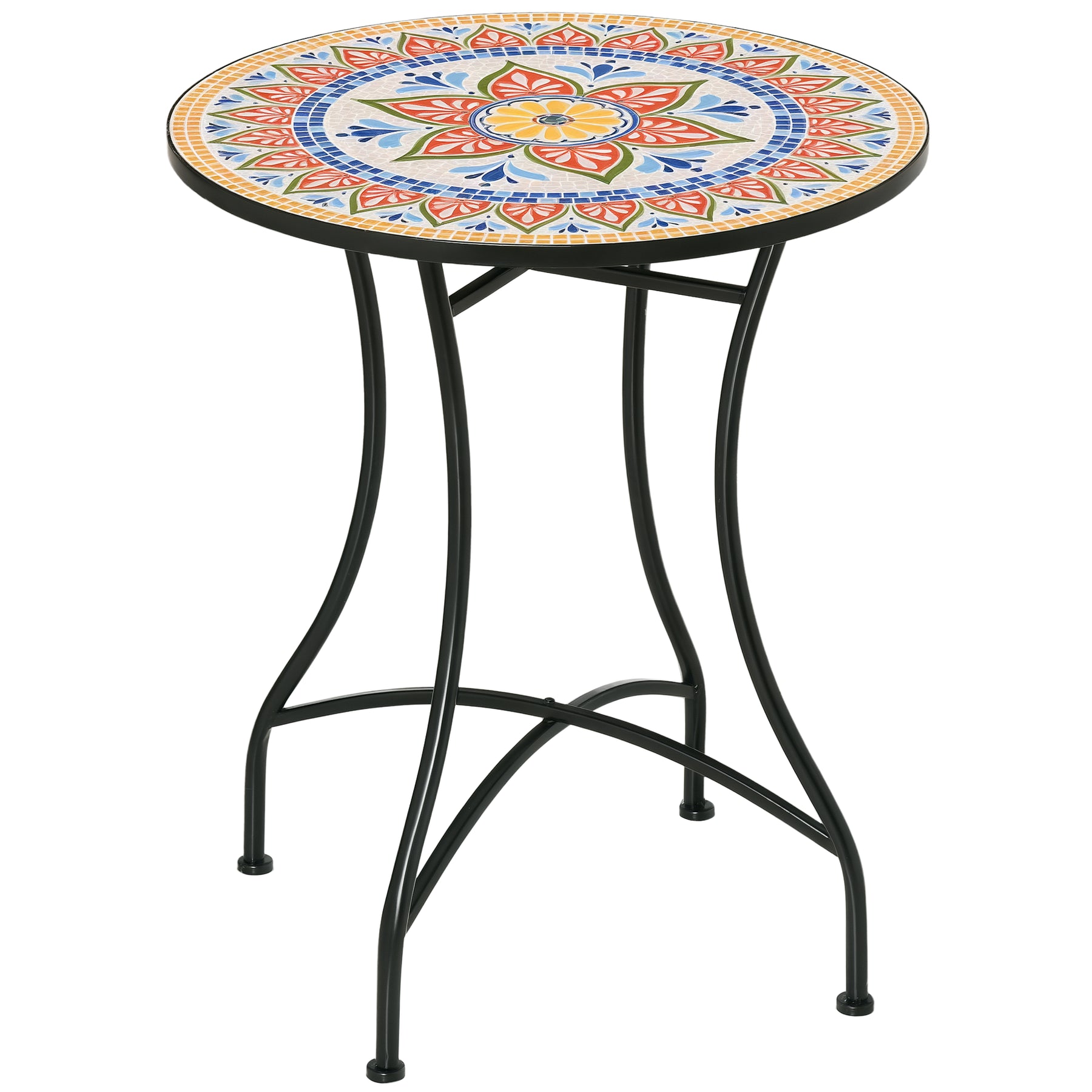 For en unik tilføjelse til dine havemøbler, vælg dette smukke bord. Det er fremstillet af en robust og holdbar pulverlakeret metalramme og har en smuk keramisk mosaikbordplade, der er pletbestandig og nem at rengøre. Den er perfekt til elegant spisning og afslapning med venner hele dagen.