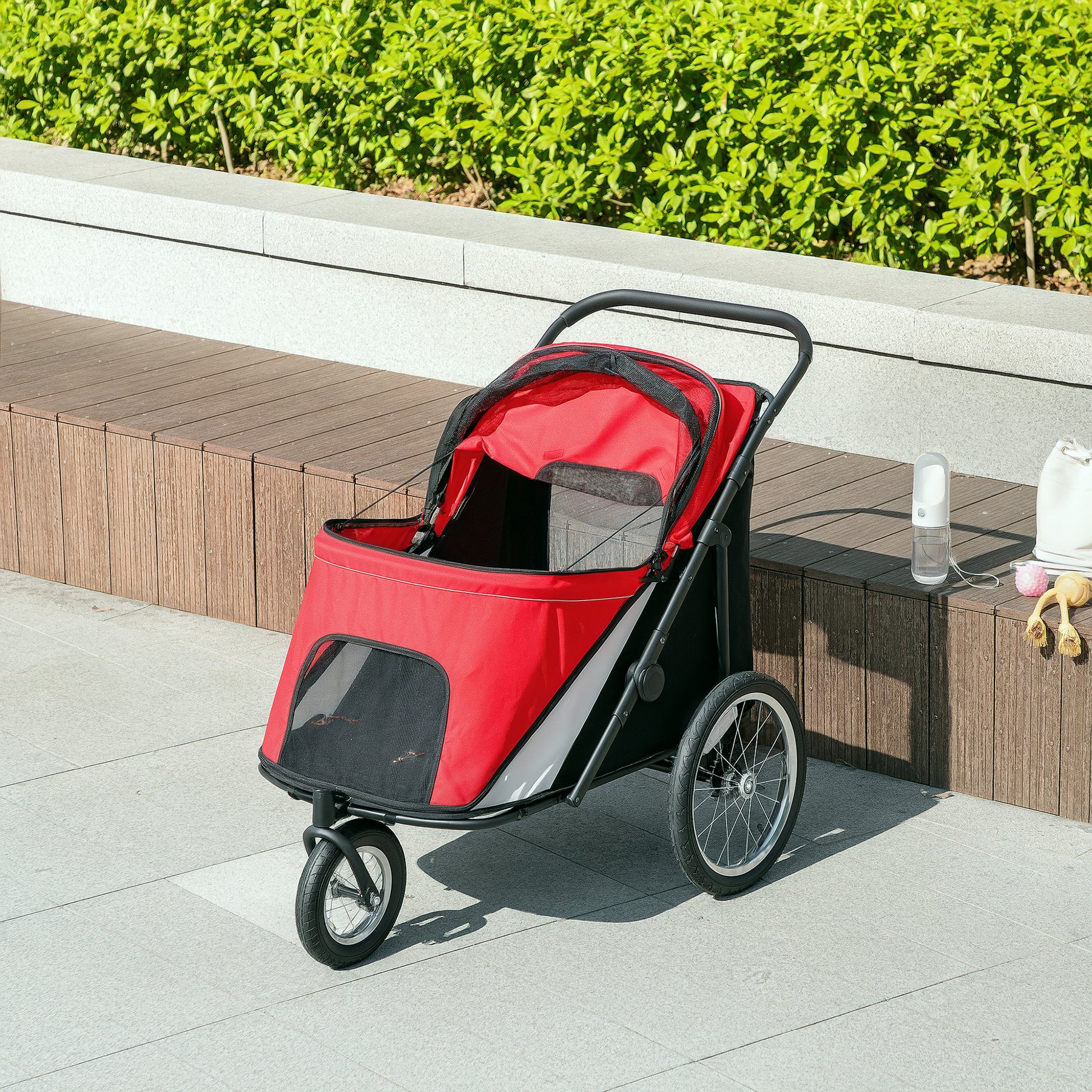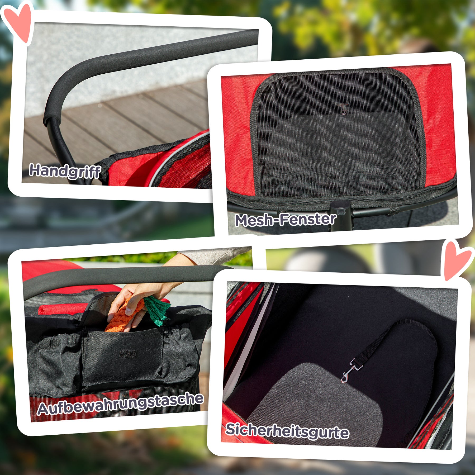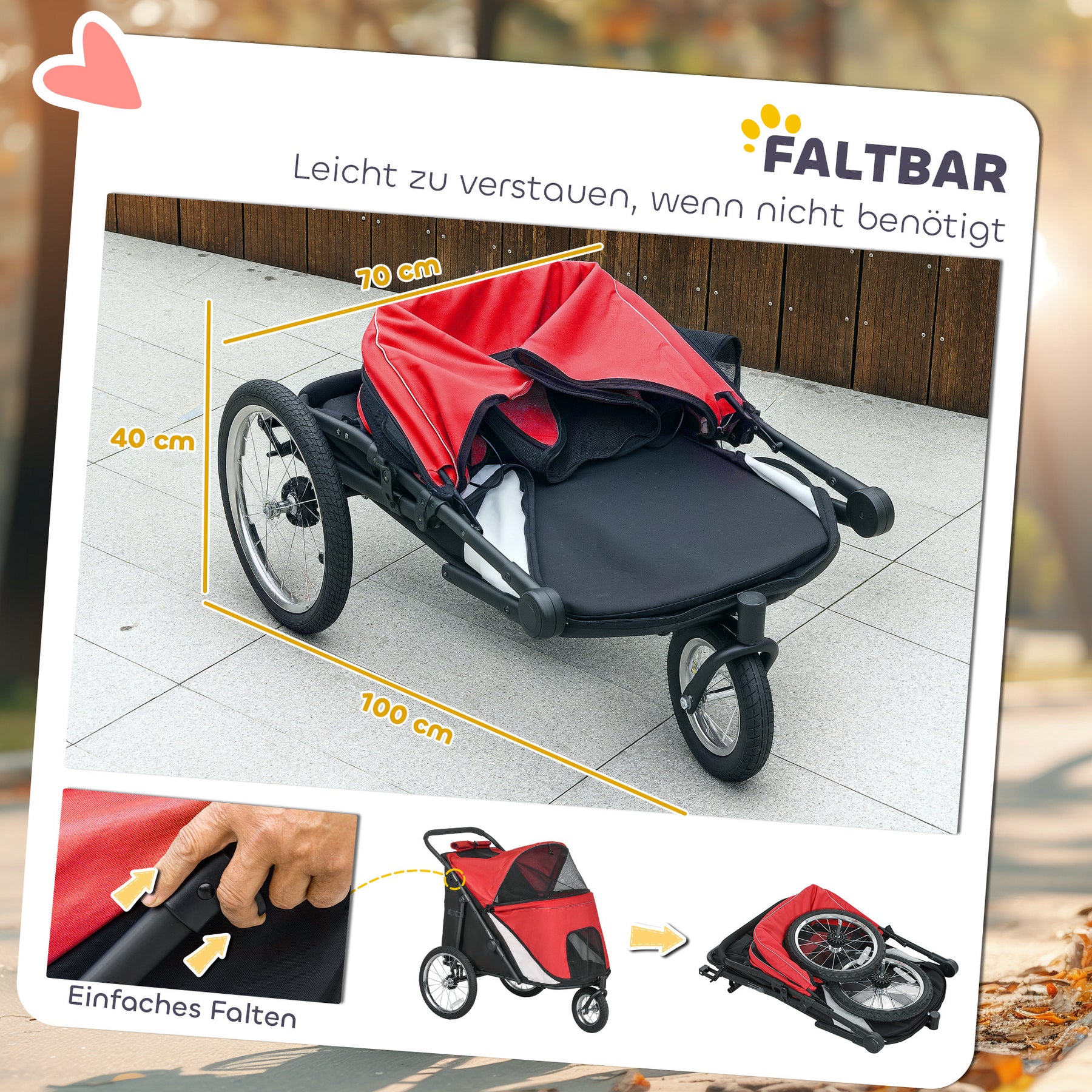 Hundevogn, foldbar, med liggehynde, stålramme, rød/sort