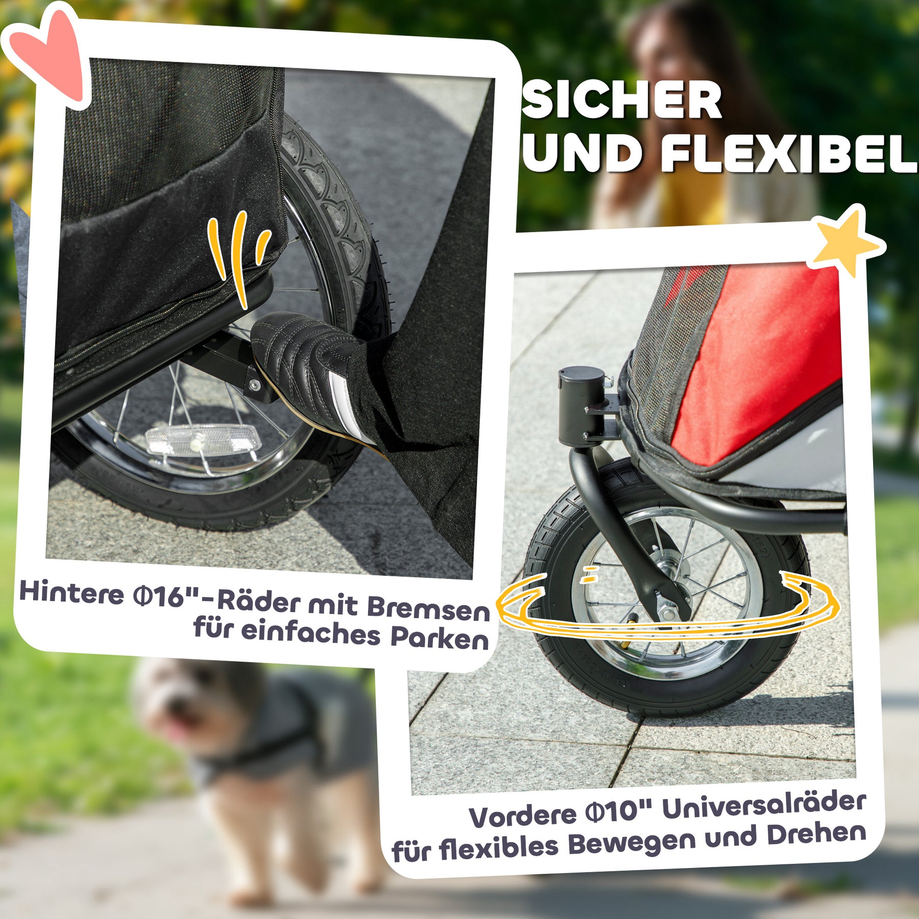 Følg eventyrets kald med din firbenede ven med denne hundevogn! Den rummelige vogn er designet til aktive kæledyrselskere og kan nemt foldes sammen efter behov. Den sammenklappelige kaleche sikrer en behagelig brise, mens det bløde interiør med hynde giver en komfortabel tur. De robuste gummidæk gør det muligt for vognen at glide problemfrit over forskellige terræner, hvilket gør hver tur til en fornøjelse.
