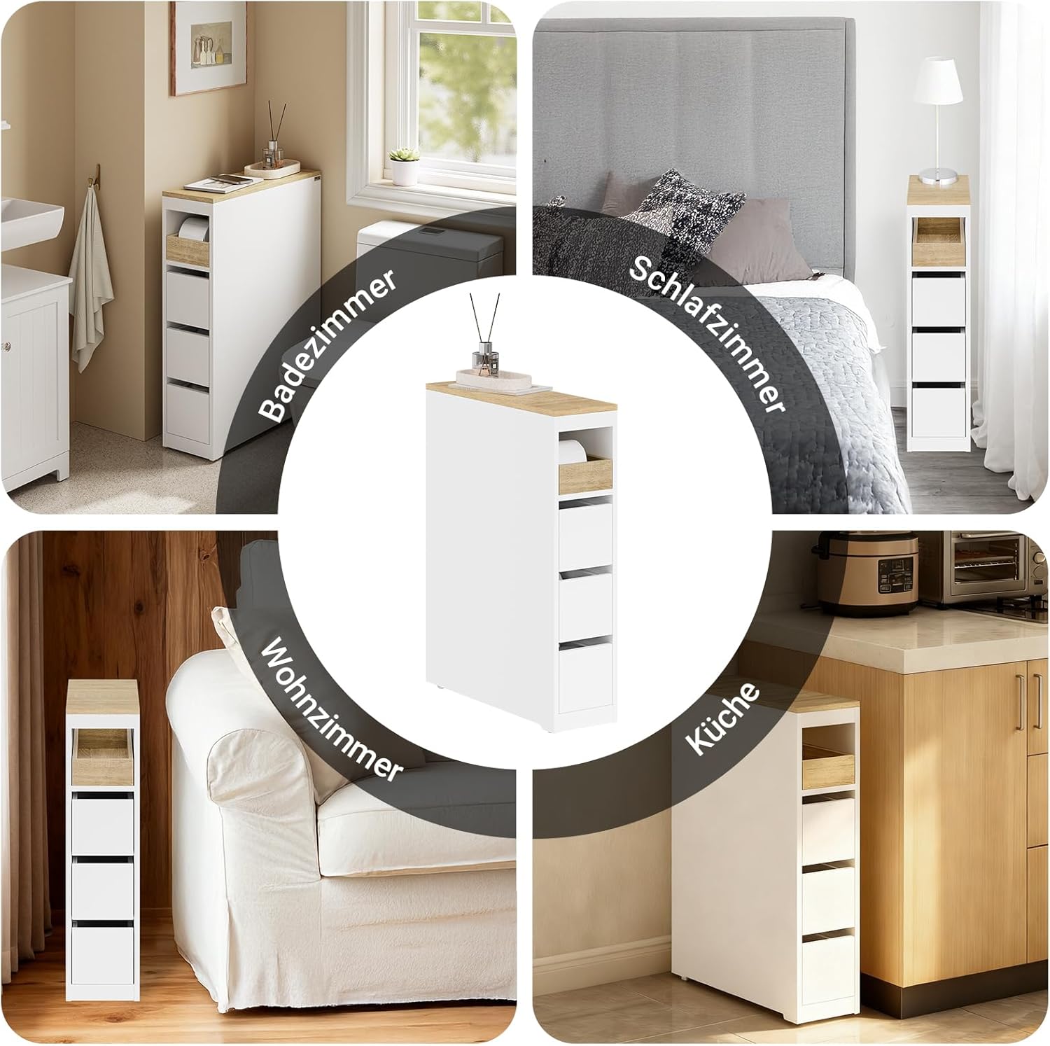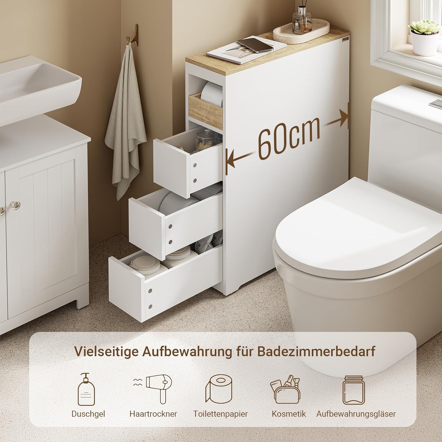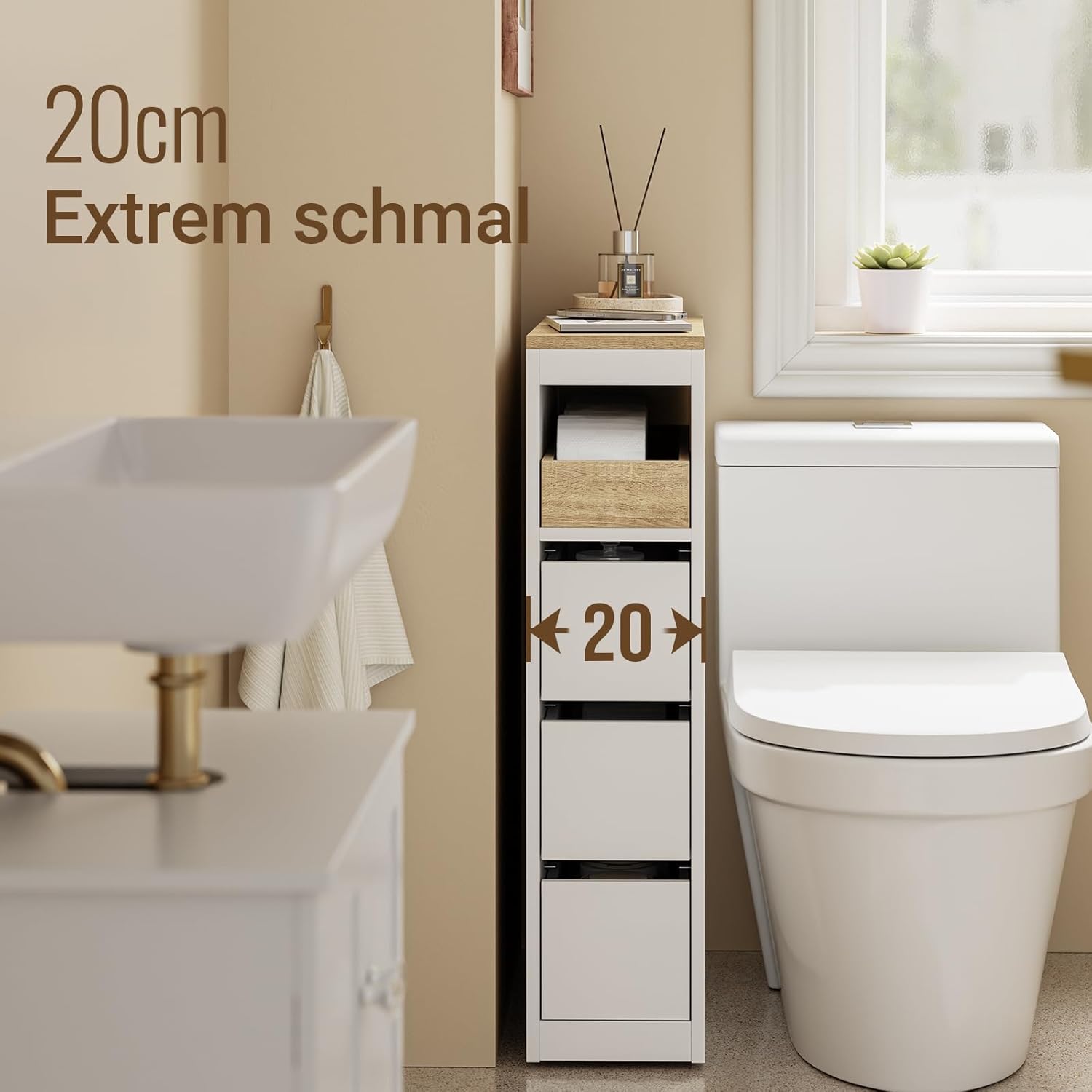 Smalt badeværelsesskab – 20 cm nicheskab med 3 skuffer, kompakt og flytbart til små badeværelser og køkkener, 60 × 20 × 82,3 cm