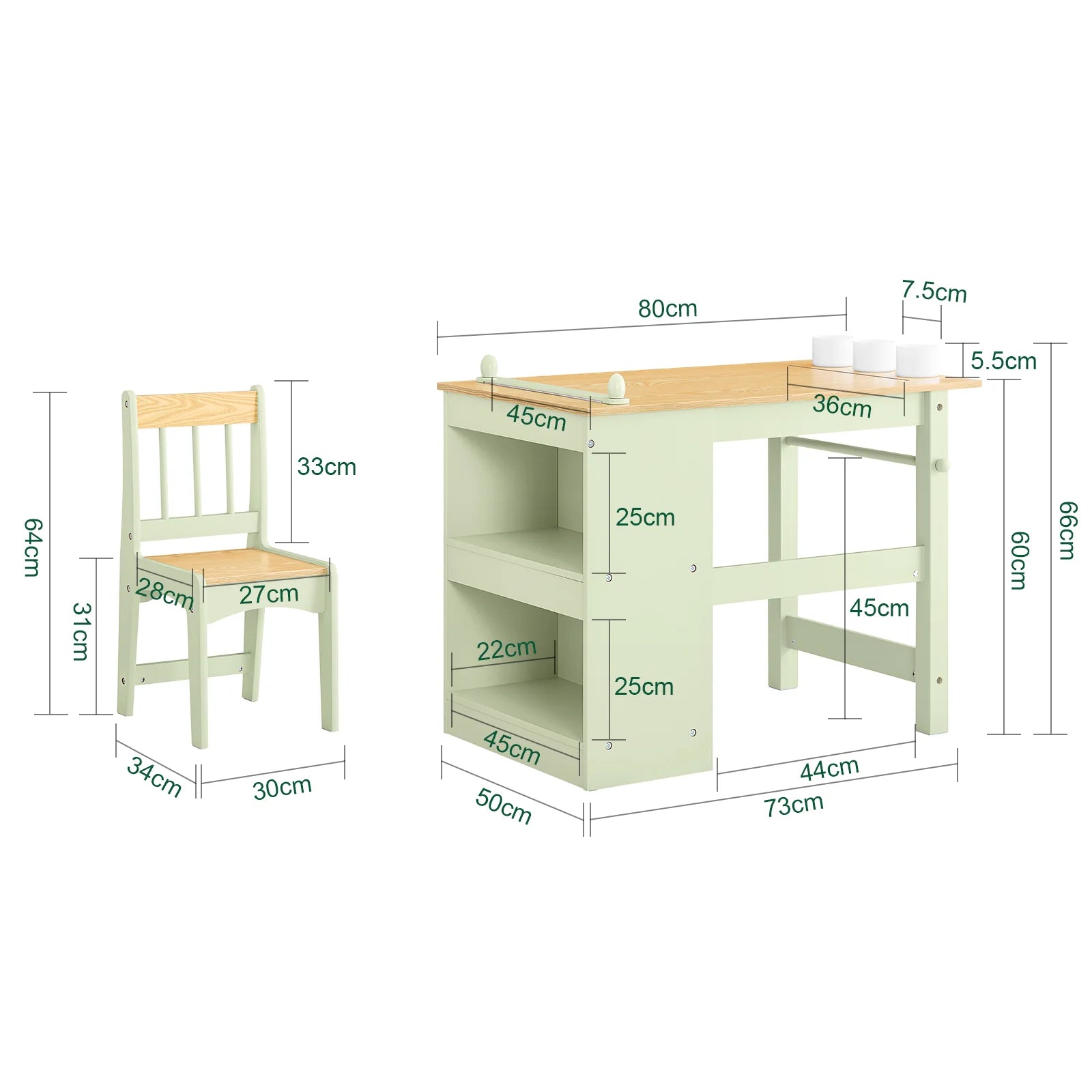 Dette funktionelle sæt er perfekt til alt fra maling og håndværk til læsning og leg, og det kompakte design passer harmonisk ind i ethvert børneværelse.