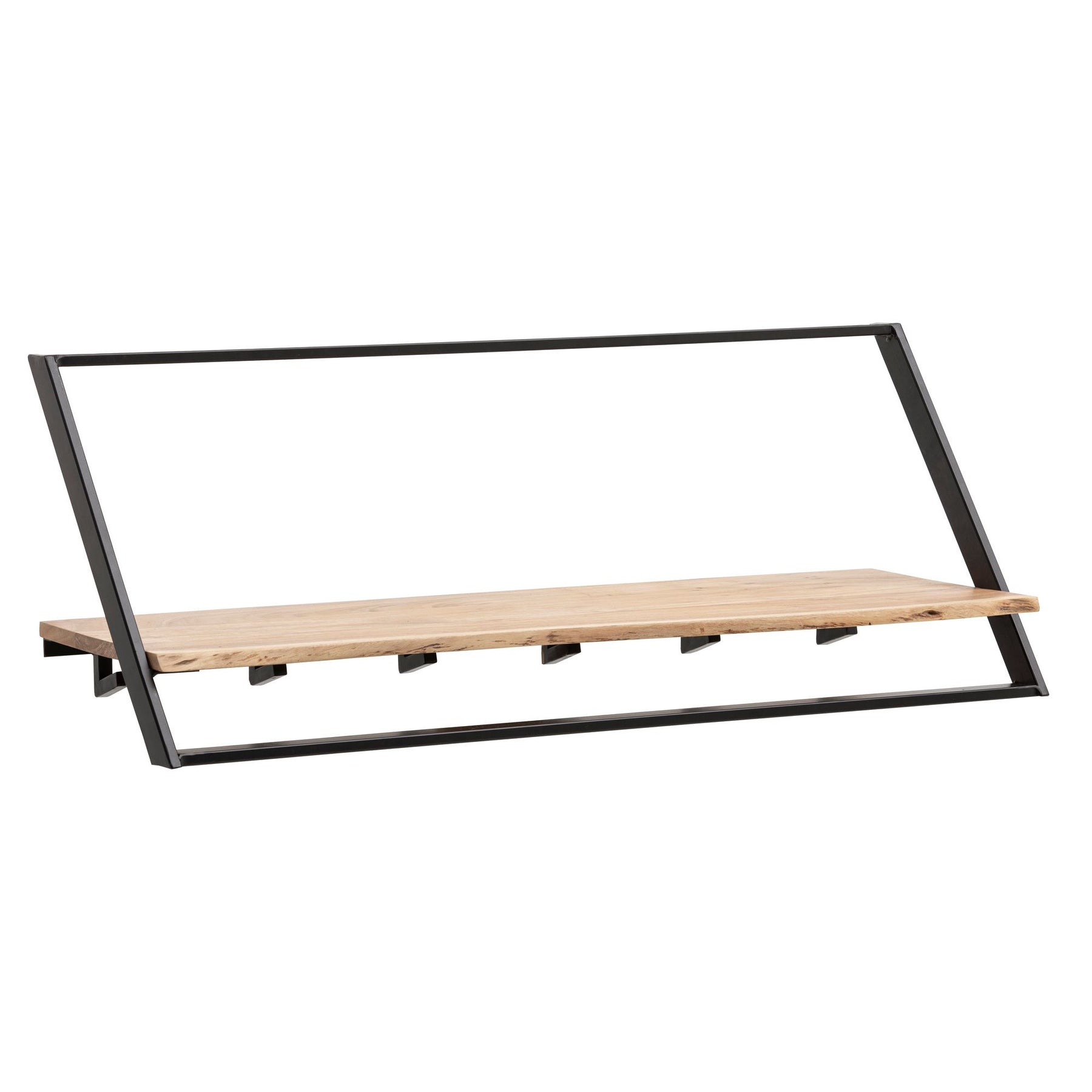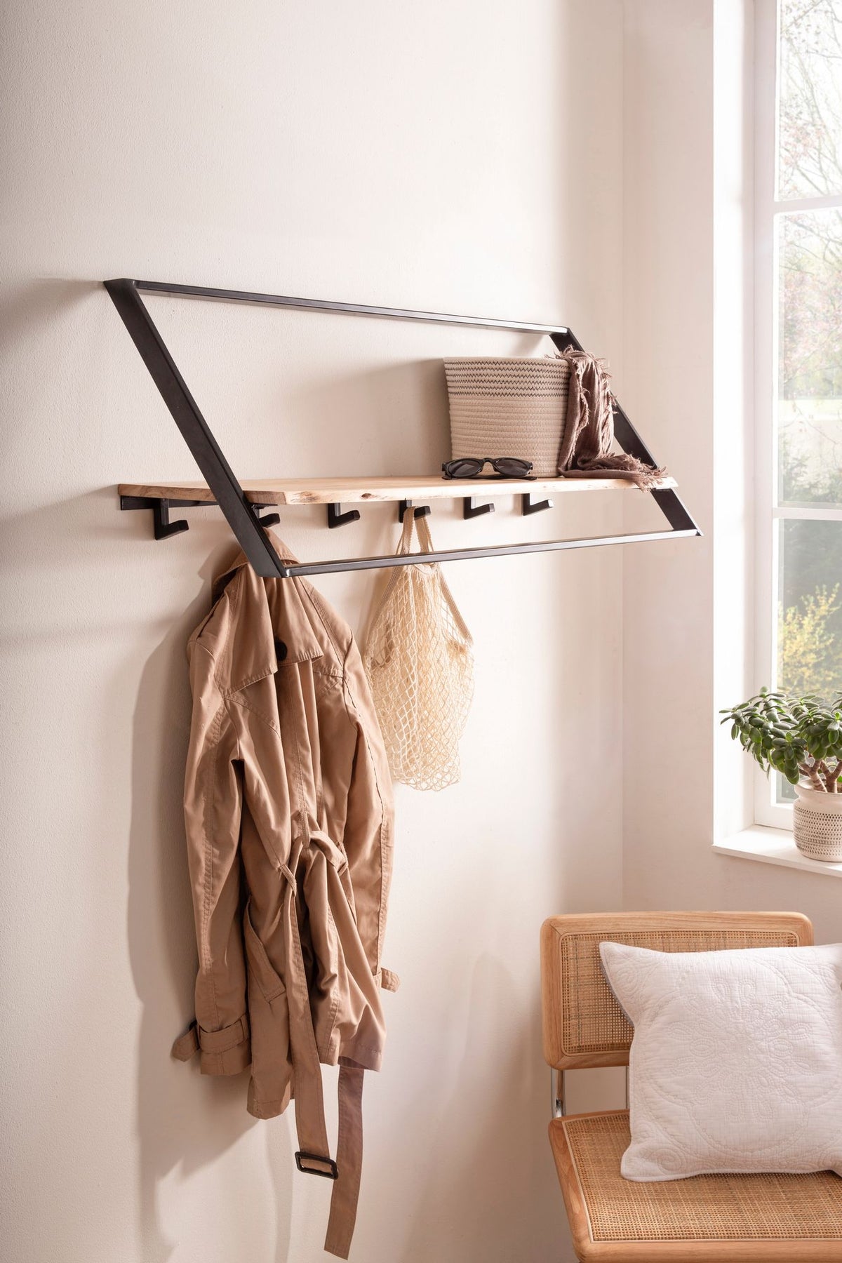 Massivt akacietræ knagerække med trækant 100 cm, industrielt væggarderobe med hylde og 6 kroge, håndlavet