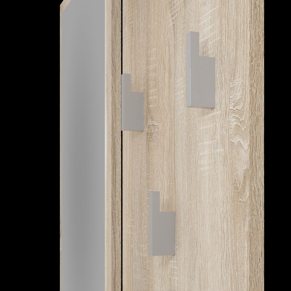 Skab en praktisk og stilren entré med RIVA – et funktionelt sæt bestående af knagerække og spejl, begge med integreret hylde. Den varme Eg Sonoma-finish tilfører rummet et naturligt og indbydende udtryk, der passer perfekt ind i både moderne og klassiske hjem.