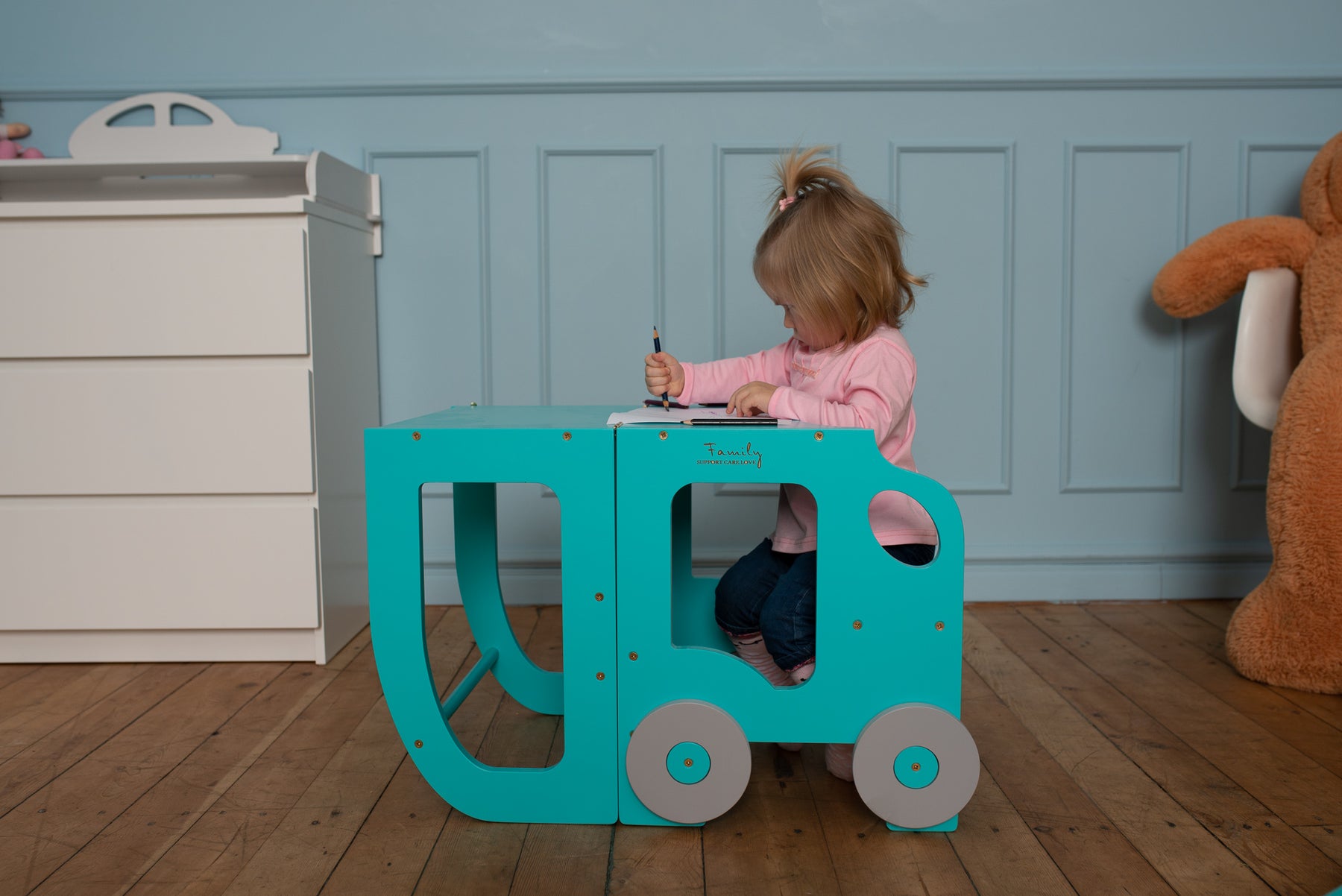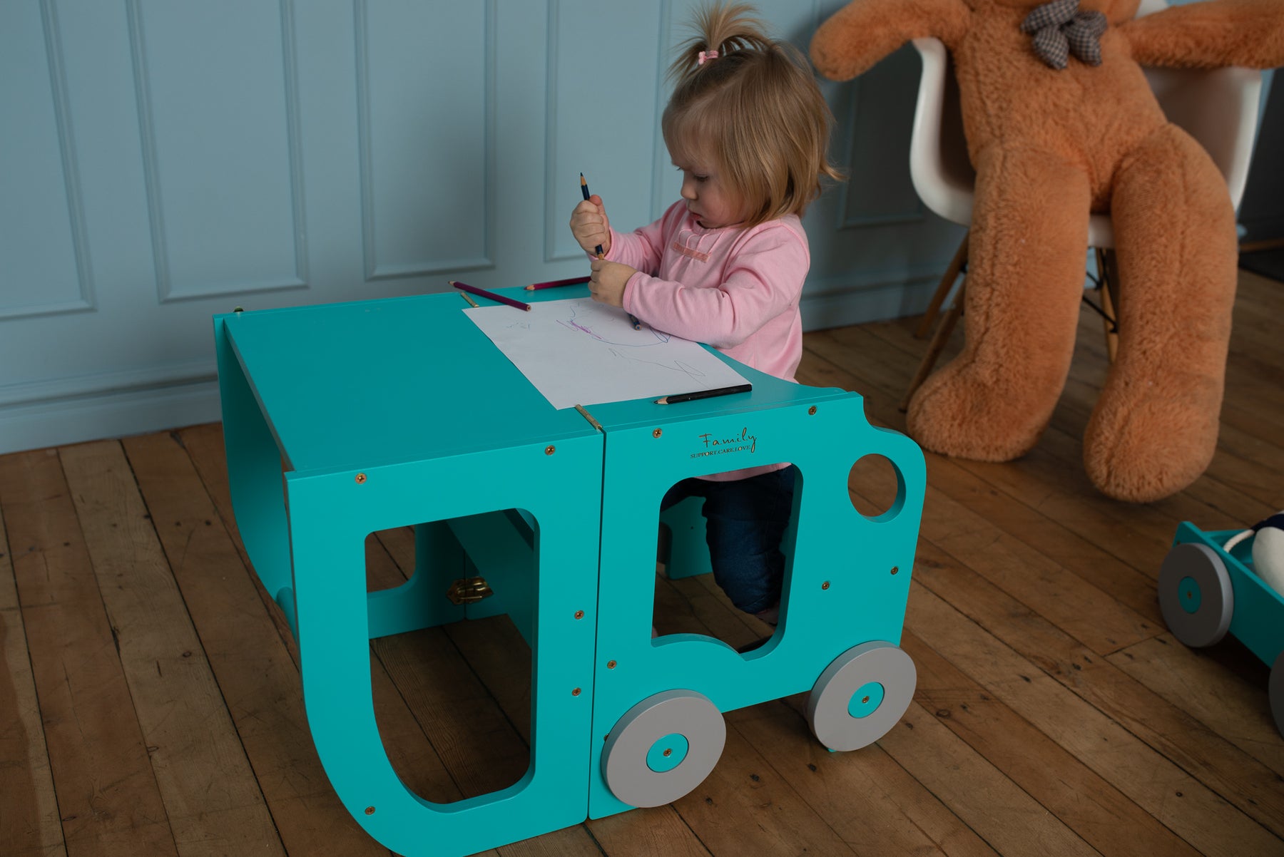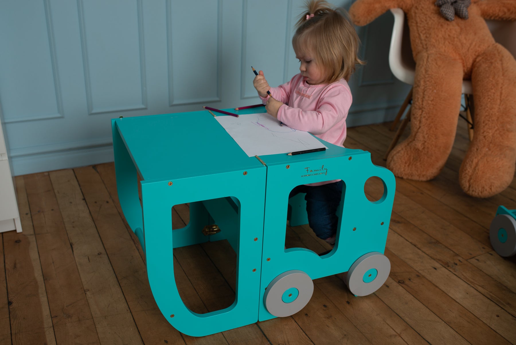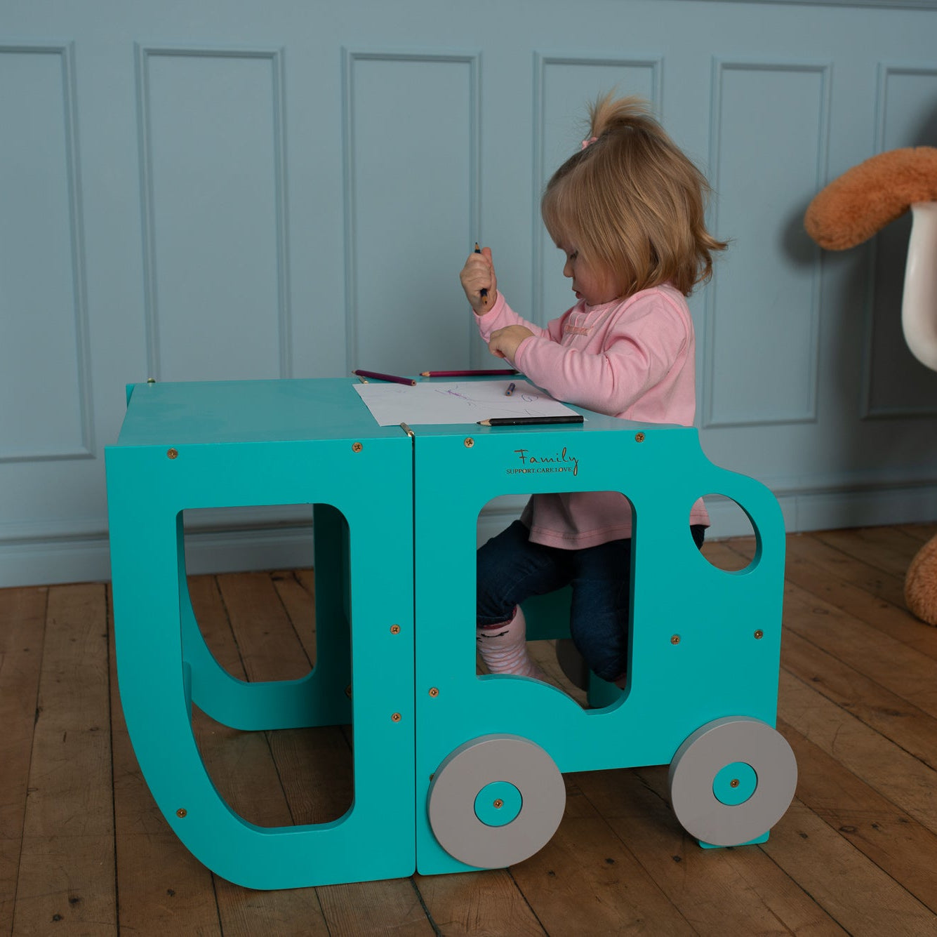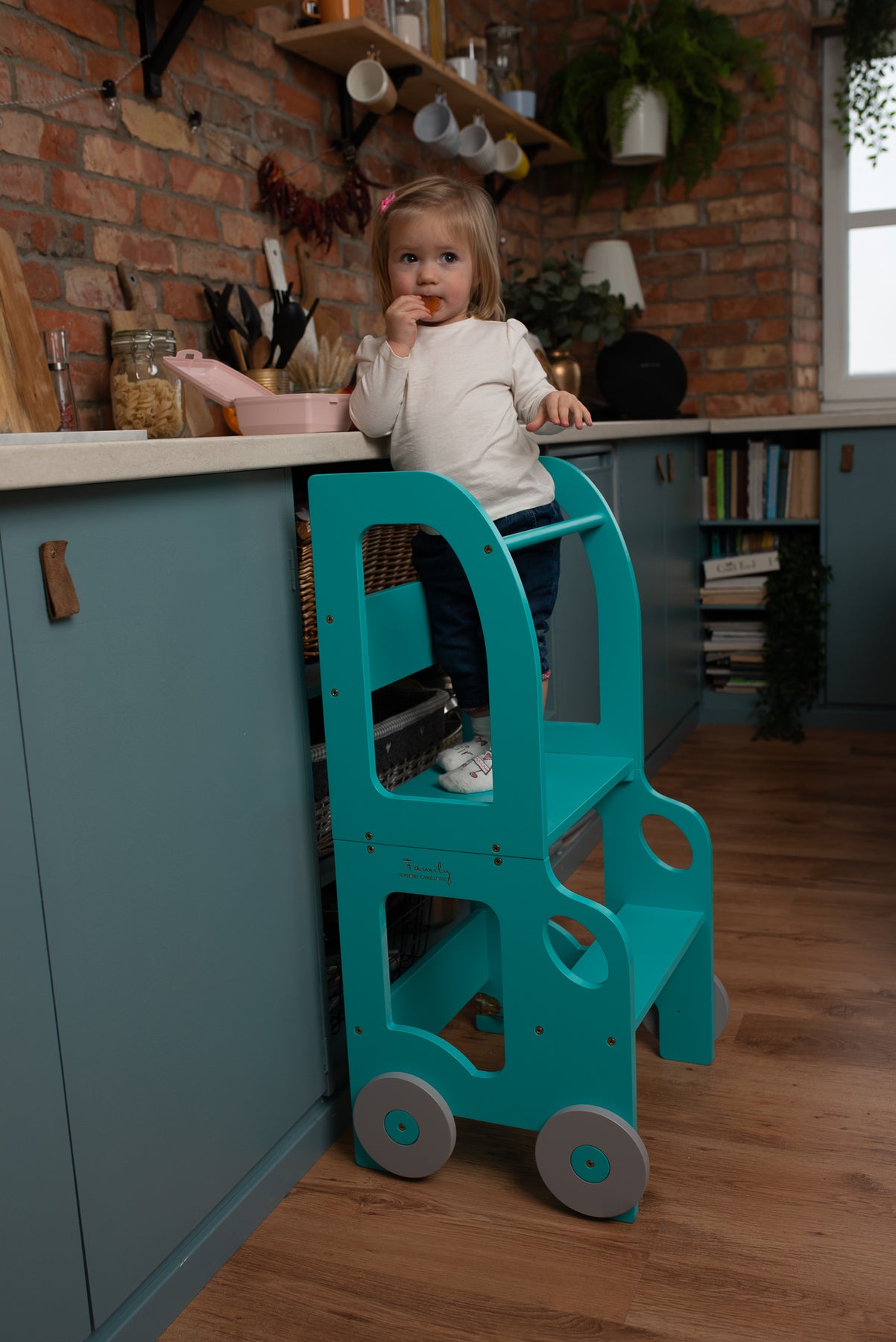 Denne montessori-inspirerede køkkentrapper, der nemt kan omdannes til bord og stol, er designet og skabt til læring, madlavning, klatring, siddeplads ved det store familiarbord samt spisning eller bare leg. Og det mest spændende er, at den ligner et legetøj og kan blive en god ven for dit barn.