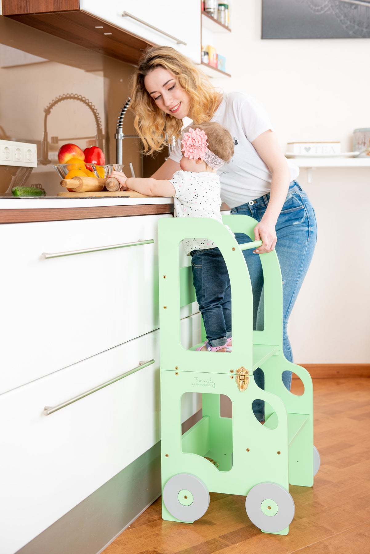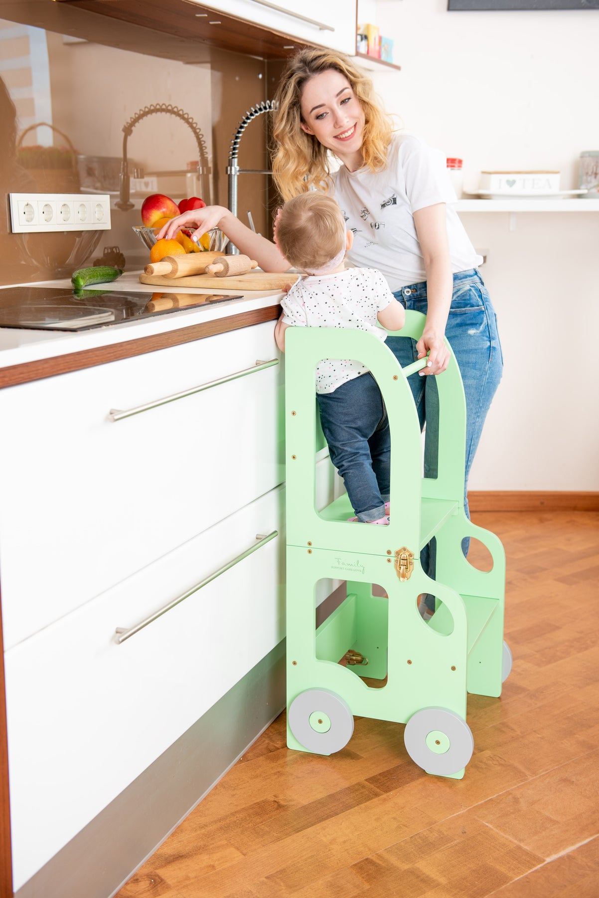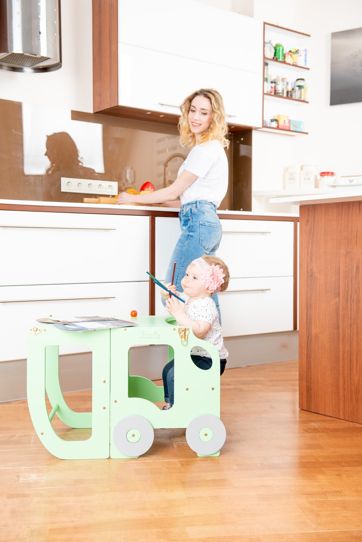 Denne montessori-inspirerede køkkentrapper, der nemt kan omdannes til bord og stol, er designet og skabt til læring, madlavning, klatring, siddeplads ved det store familiarbord samt spisning eller bare leg. Og det mest spændende er, at den ligner et legetøj og kan blive en god ven for dit barn.