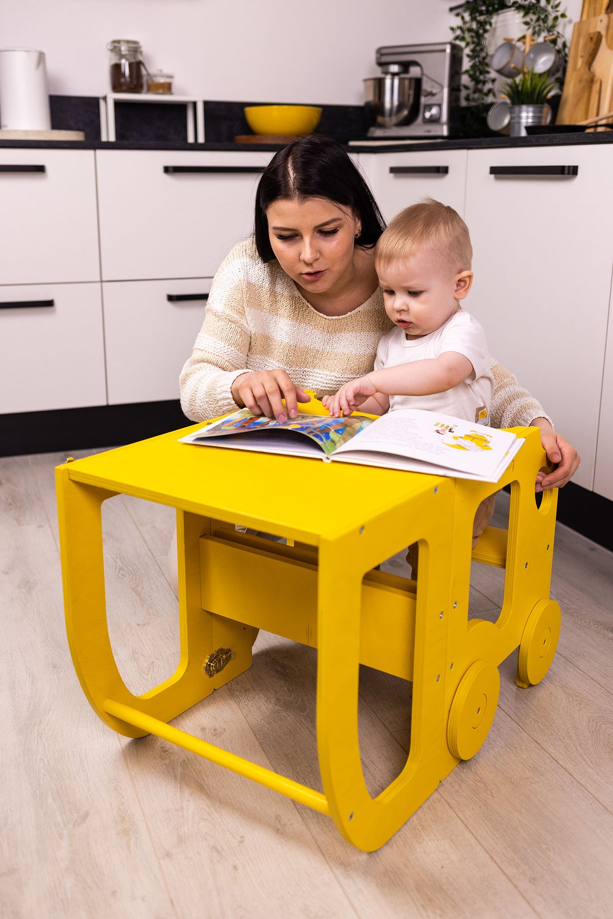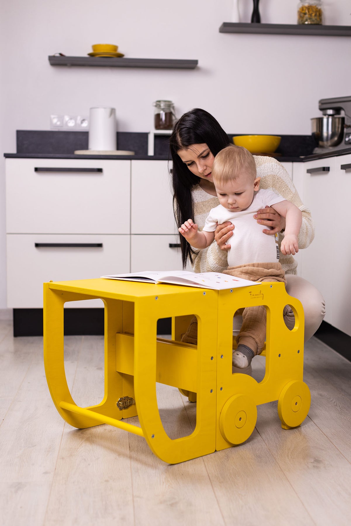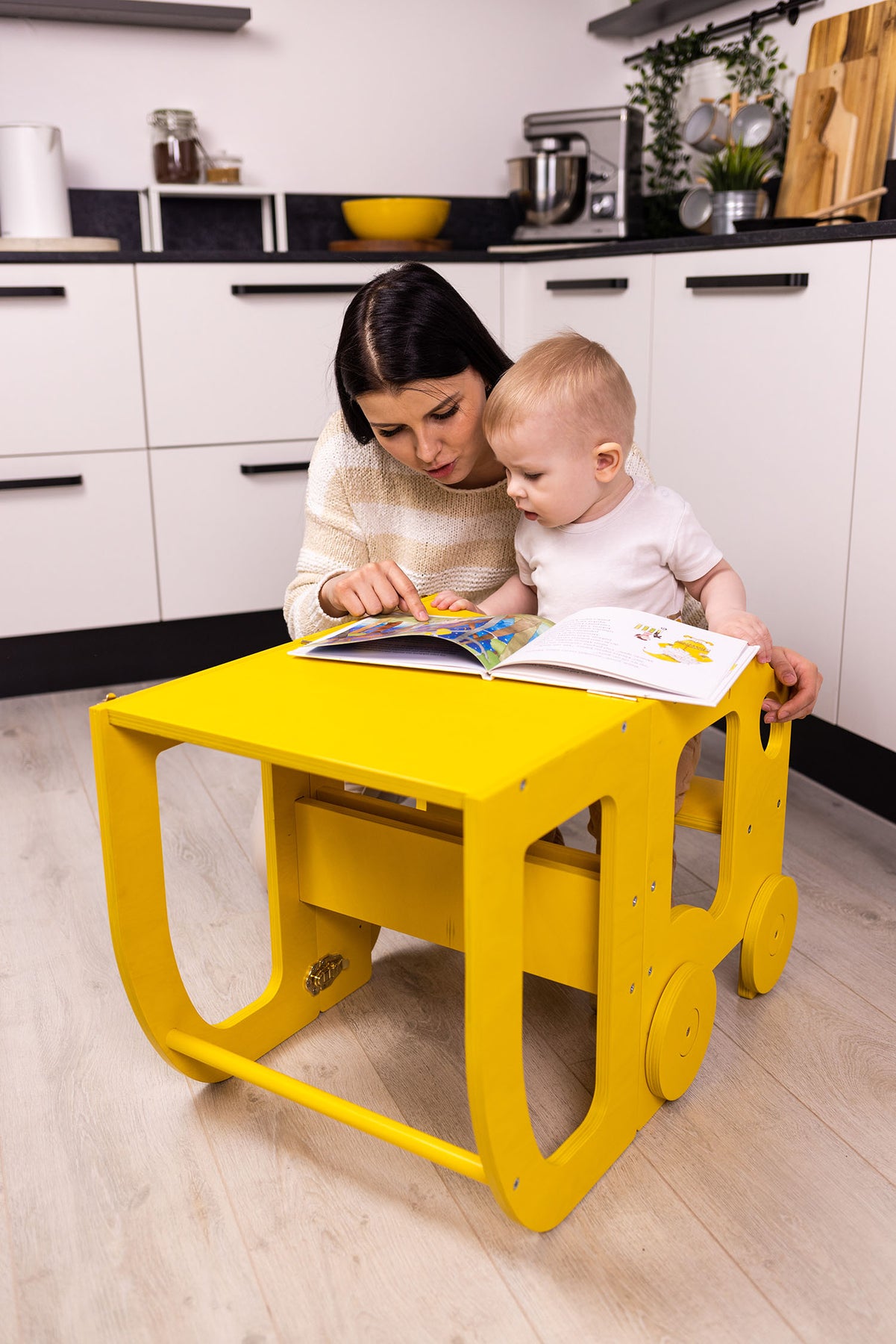 Denne montessori-inspirerede køkkentrapper, der nemt kan omdannes til bord og stol, er designet og skabt til læring, madlavning, klatring, siddeplads ved det store familiarbord samt spisning eller bare leg. Og det mest spændende er, at den ligner et legetøj og kan blive en god ven for dit barn.