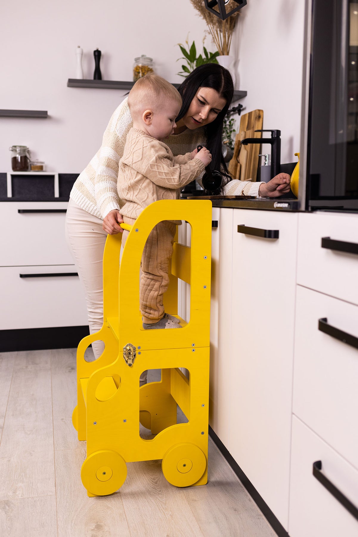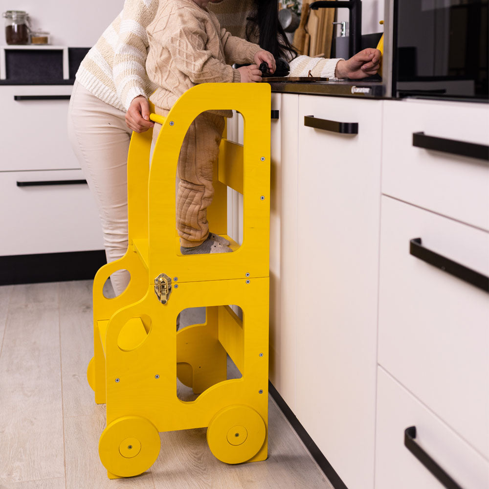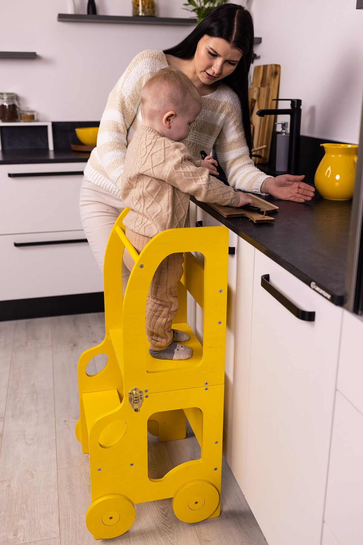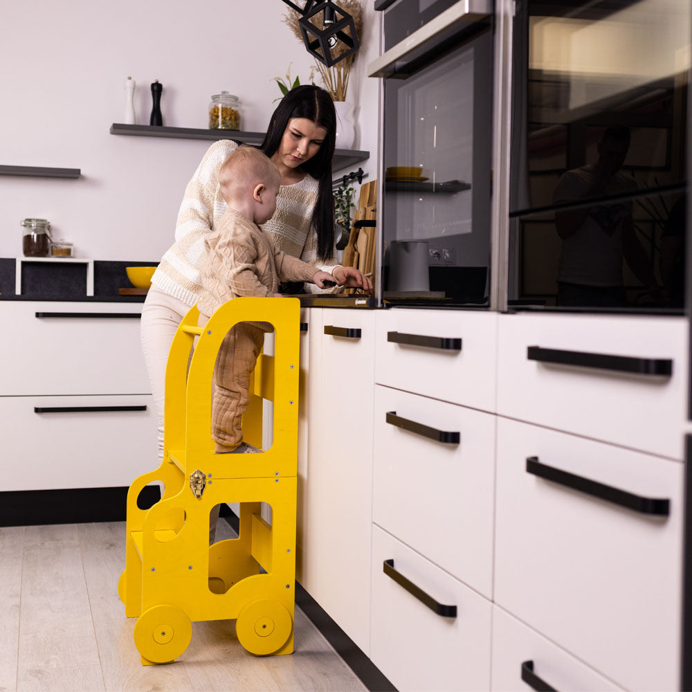 Denne montessori-inspirerede køkkentrapper, der nemt kan omdannes til bord og stol, er designet og skabt til læring, madlavning, klatring, siddeplads ved det store familiarbord samt spisning eller bare leg. Og det mest spændende er, at den ligner et legetøj og kan blive en god ven for dit barn.