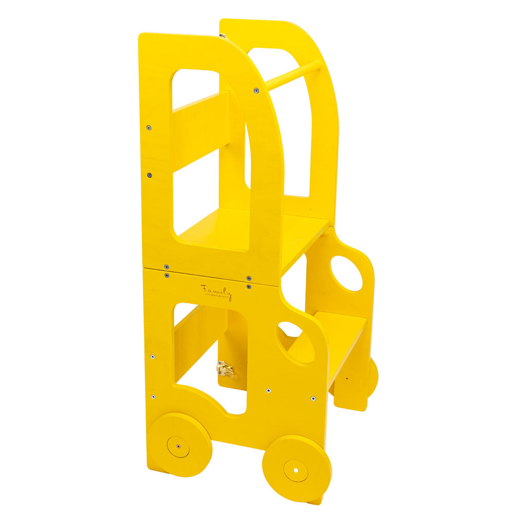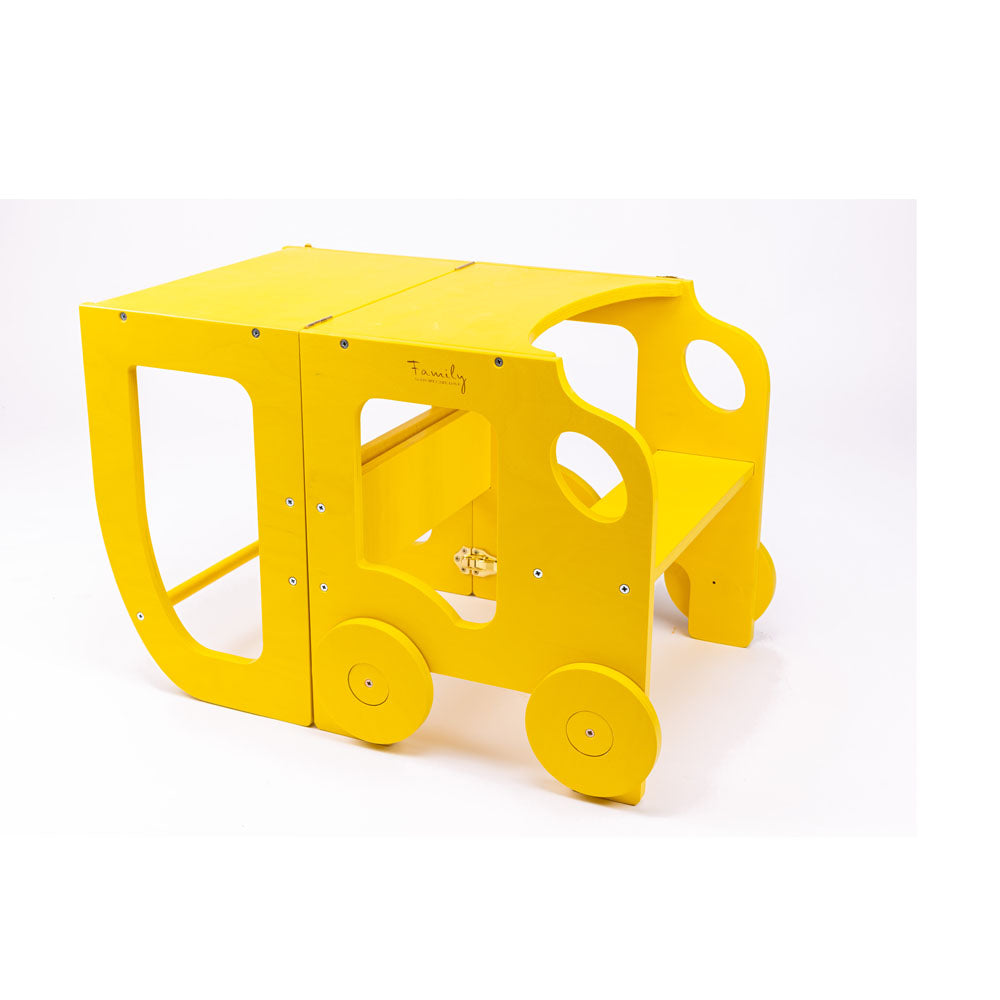 Køkkentrappe / montessori-læringstårn: bord, stol og trappe i ét til barn, gul
