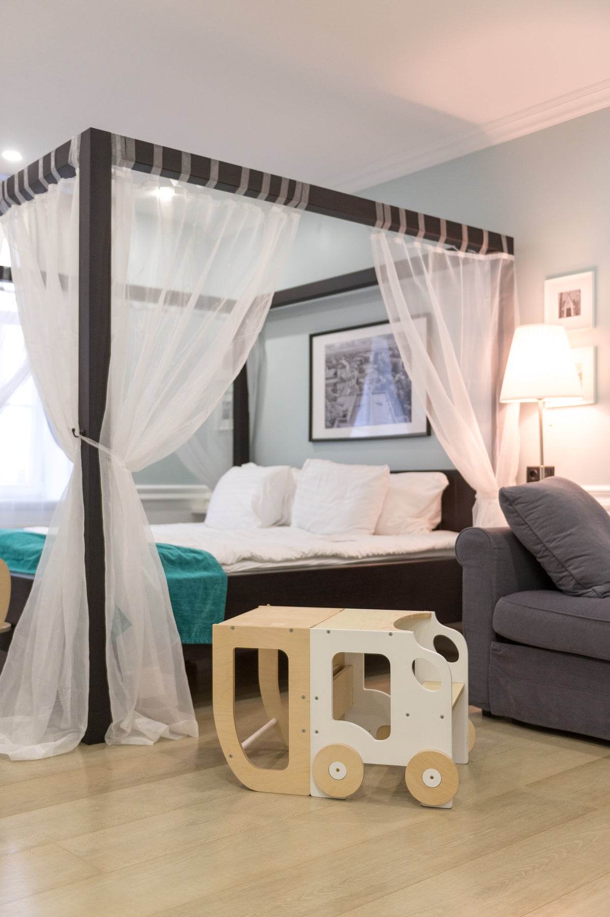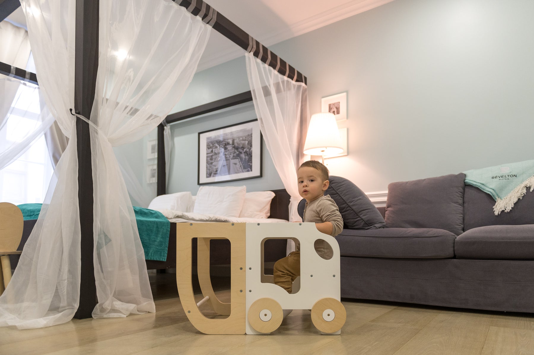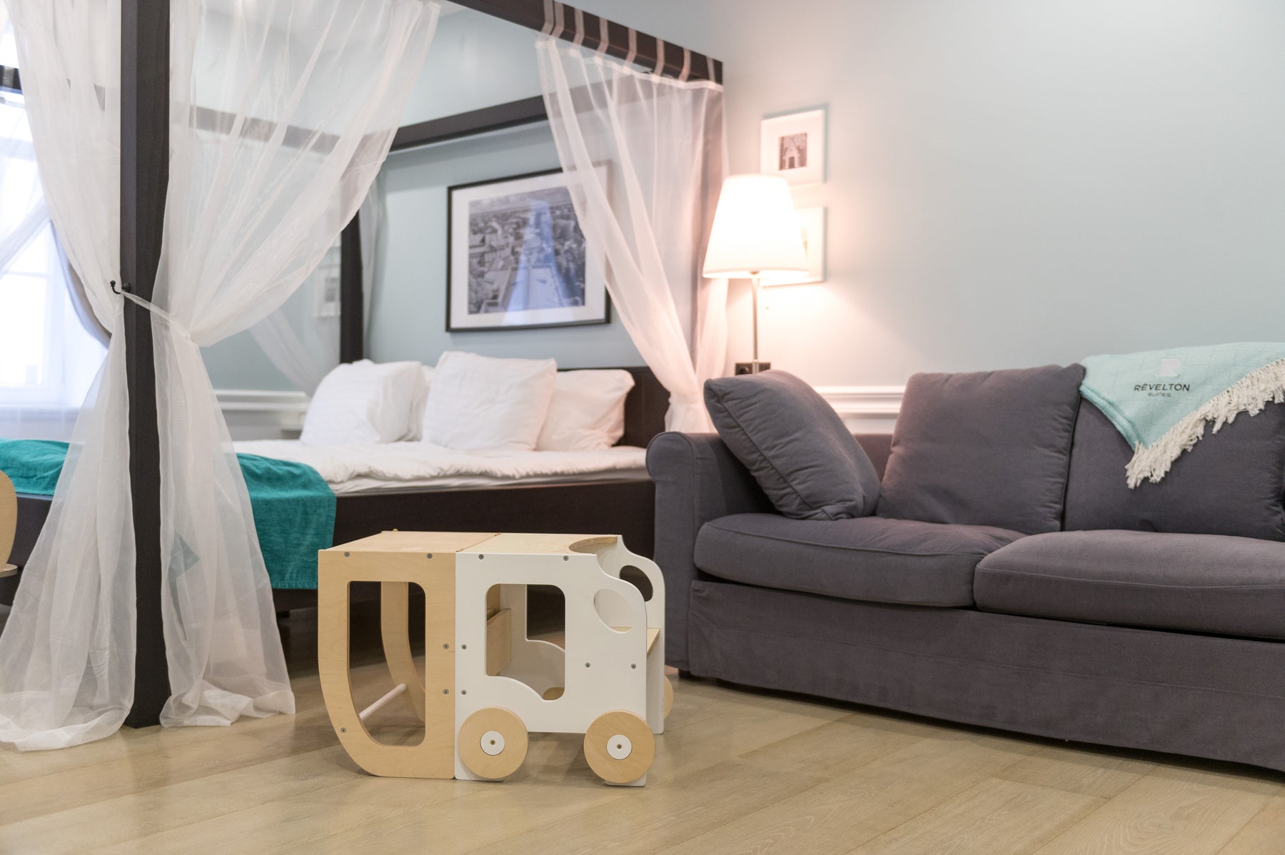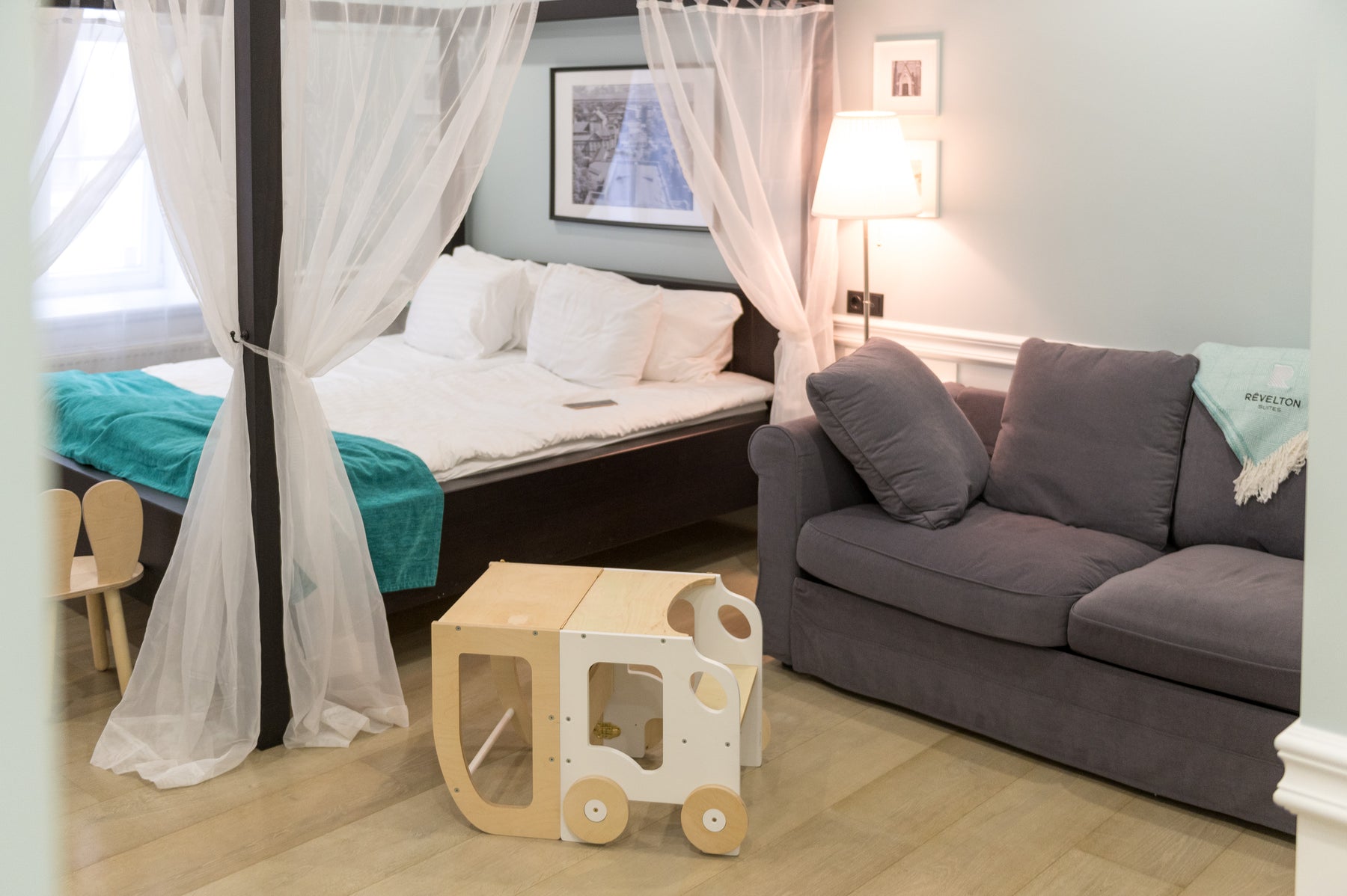 En lys og ren kombination af hvid og natur, der skaber et lyst og åbent udtryk i rummet og giver en afbalanceret og harmonisk atmosfære for barnets aktiviteter.