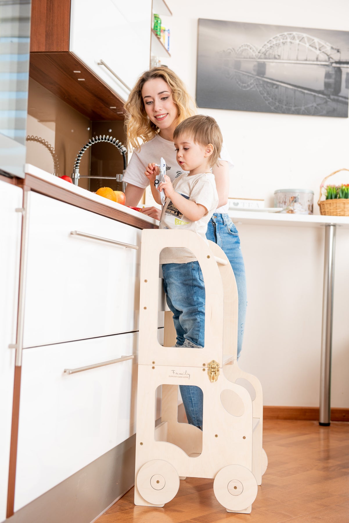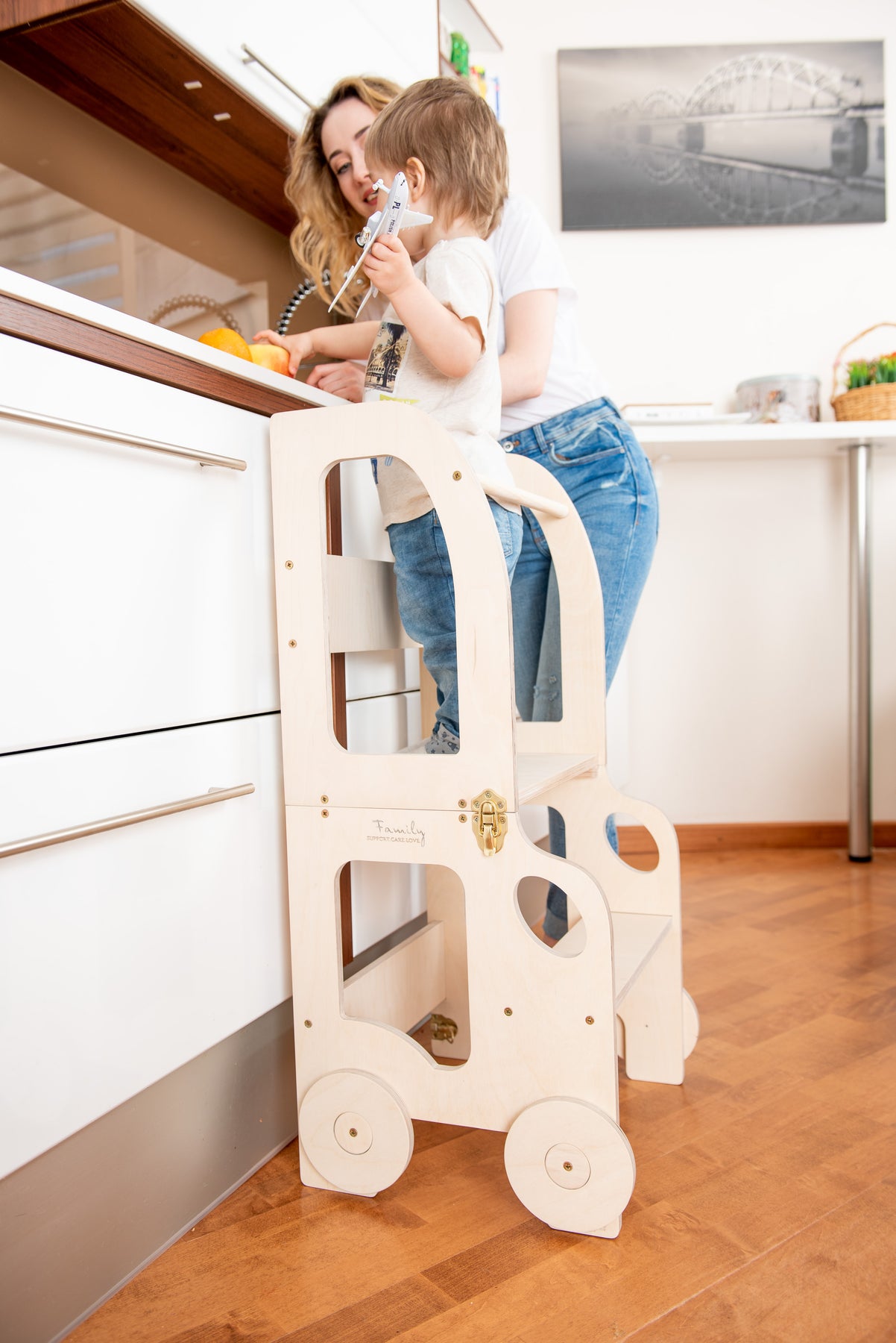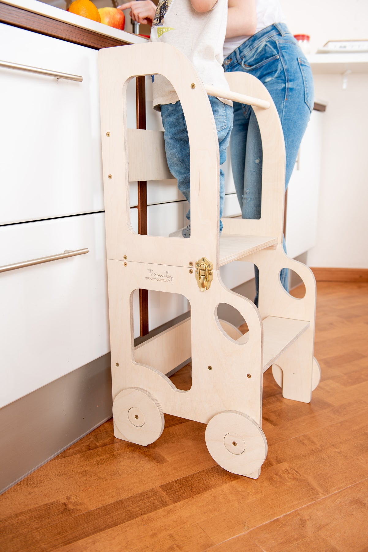 Denne montessori-inspirerede køkkentrapper, der nemt kan omdannes til bord og stol, er designet og skabt til læring, madlavning, klatring, siddeplads ved det store familiarbord samt spisning eller bare leg. Og det mest spændende er, at den ligner et legetøj og kan blive en god ven for dit barn.