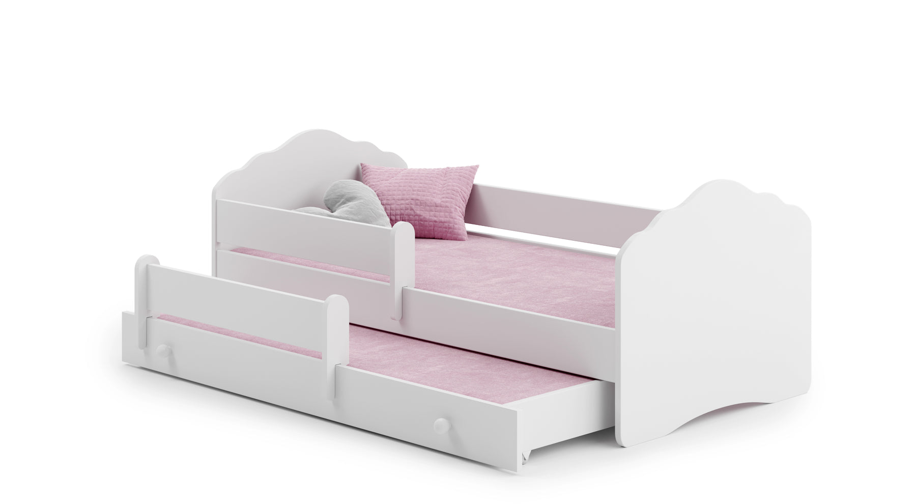 Den hvide FALA II-seng er ideel til søskende eller et gæsteværelse. Dens moderne design og funktionalitet gør den til det perfekte sted til underholdning om dagen og et behageligt tilflugtssted til at sove om aftenen. Takket være den udtrækkelige underseng kan du nemt forberede plads til gæster eller søskende. Designet gør det muligt at montere sengen på højre eller venstre side, så du kan tilpasse den til dit værelses layout.