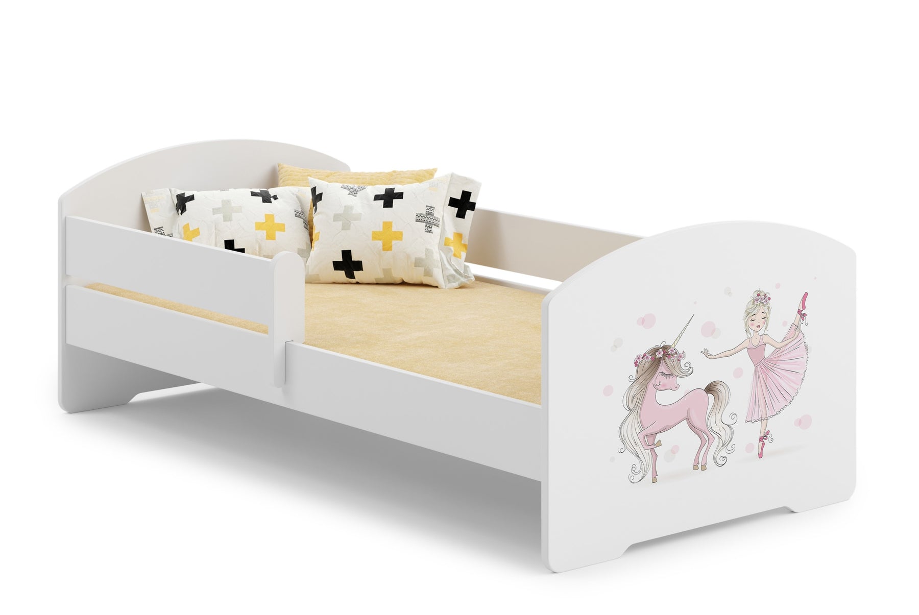 LUK børneseng 140x70 med gelænder - Pige med enhjørning