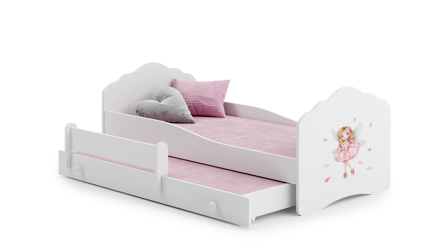 FALA II sengen sikrer maksimal sikkerhed takket være dens afrundede kanter og aftagelige sengeheste, der forhindrer dit barn i at falde ud under søvn. Den er lavet af certificerede materialer og er kendetegnet ved sin holdbarhed og miljøvenlige produktion. Den hvide seng med børnegrafik bringer en glædelig og eventyrlig atmosfære til rummet, hvilket vil gøre tiden til leg og hvile mere behagelig. Trykket er ikke kun en fryd for øjet, men beriger også rummet og gør sengen til et unikt dekorativt element. Den robuste møbelpladekonstruktion og FLEX-rammen sikrer en behagelig nattesøvn, og to madrasser og rammer er inkluderet for daglig komfort. Sengen er nem at samle med den medfølgende vejledning, og dens holdbarhed betyder, at den vil holde i mange år fremover.