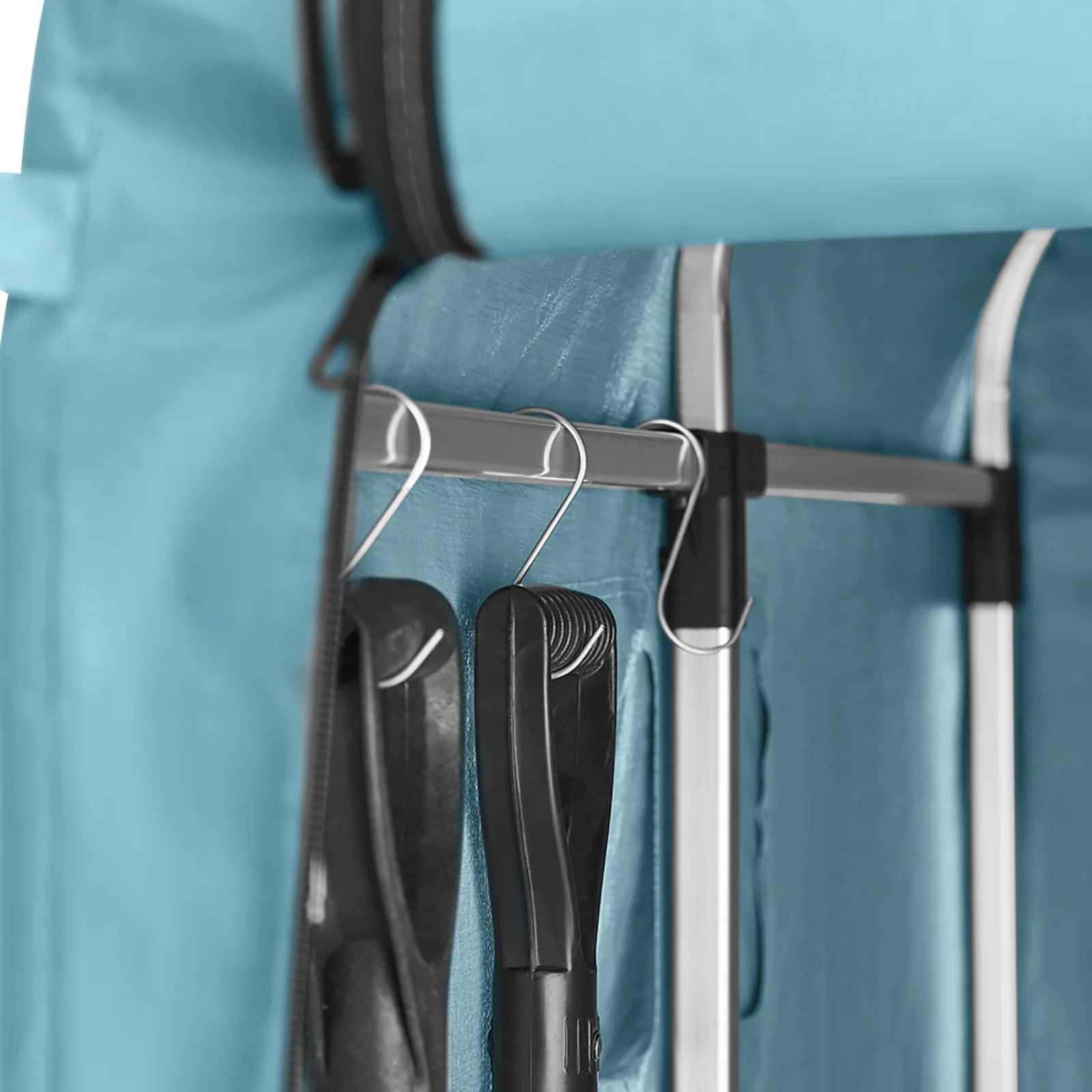 • Ekstra stabilitet: Leveres med 13 stropper og 4 stormankre, som kan fastgøres til 13 forstærkede snørehuller. Dette giver ekstra stabilitet og sikrer, at garagen står fast i al slags vejr.