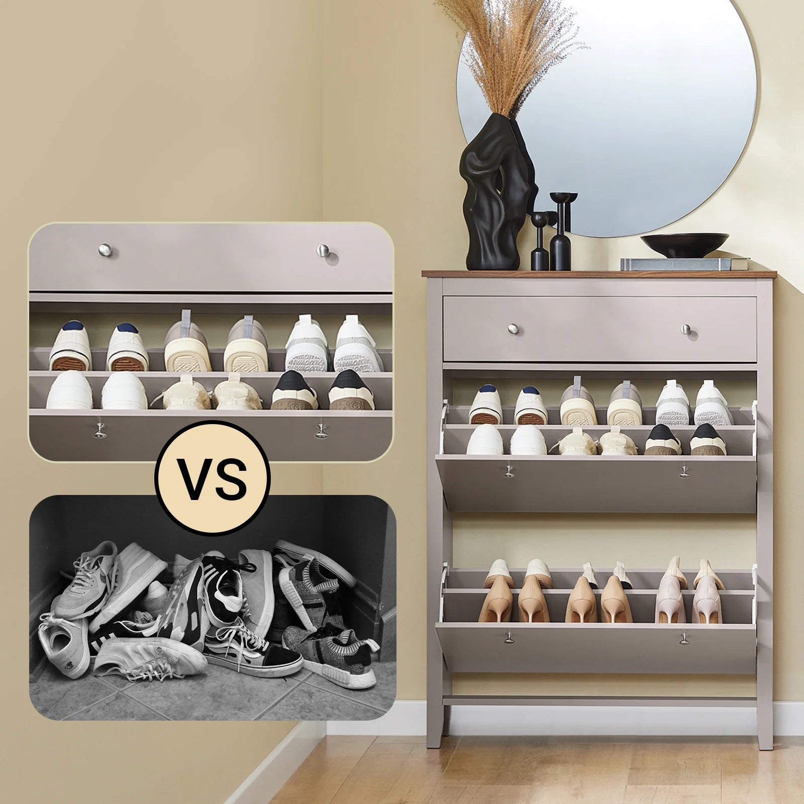 • Kompakt og pladsbesparende: Med en dybde på kun 24cm er dette skoskab designet til de trange steder. Det passer perfekt ind i smalle entréer, gange eller små lejligheder, hvor hver centimeter tæller.
