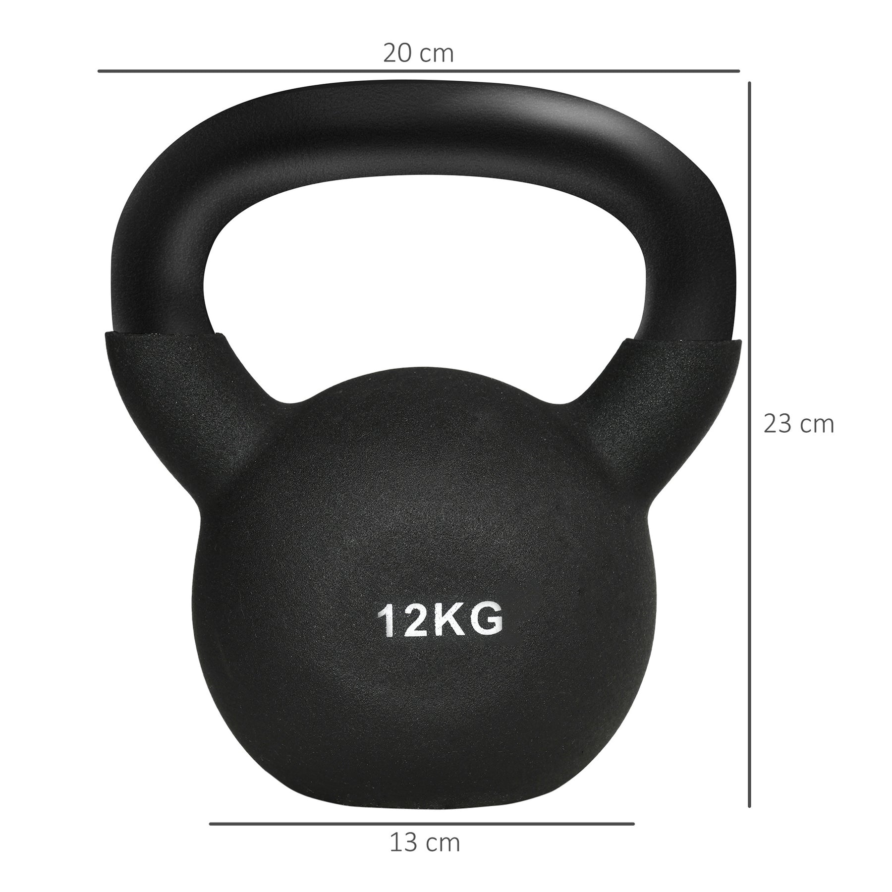 Kettlebell, 12 kg, med plastbelægning, stål, sort, 20 x 13 x 22 cm