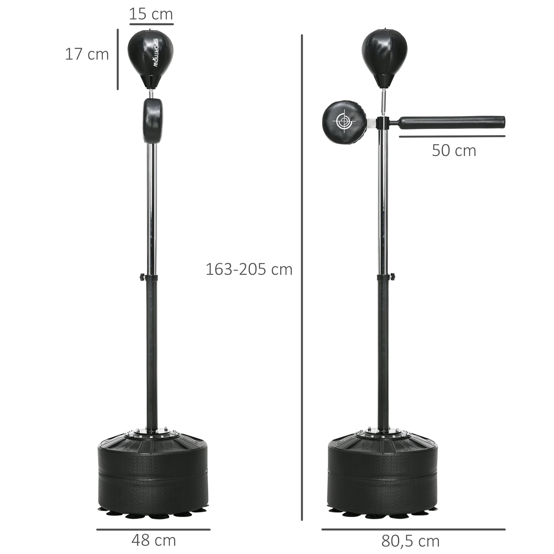 Højdejusterbar boksebold, 360° roterbar, inklusive boksebandager, sort, 80,5 x 48 x 163-205 cm