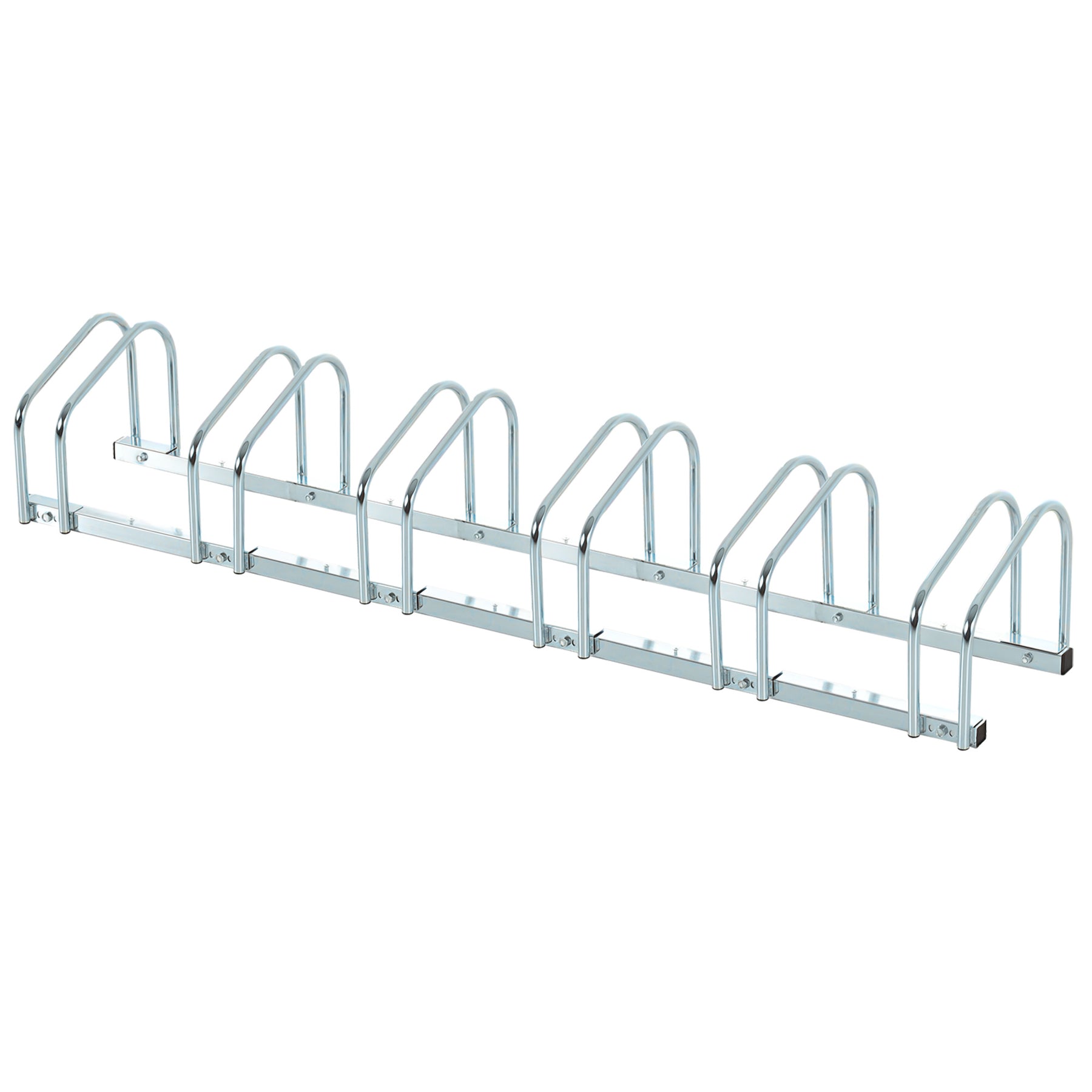 Dette praktiske cykelstativ tilbyder sikker parkering til op til 6 cykler. Den slidstærke stålstruktur med vejrbestandig finish sikrer langvarig udendørs brug. Uanset om det er børnecykler, mountainbikes eller racercykler med en dækbredde på op til 65 mm, kan de parkeres sikkert og nemt.