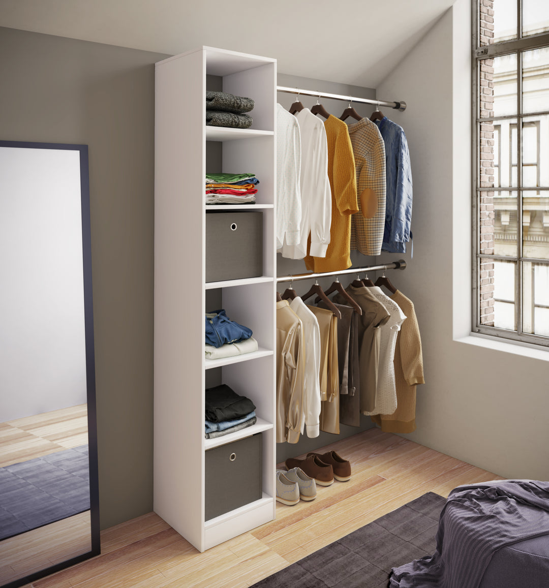 Med vores løsninger kan du indrette entré, soveværelse og andre rum gennem opbevaringsløsninger fra garderobestativer, garderobeskabe, skoskabe- og reoler, bøjlestænger og spejle. Geniale garderobeløsninger, der skaber ro, orden og overblik i hele hjemmet. Og som samtidig ser fantastisk ud!