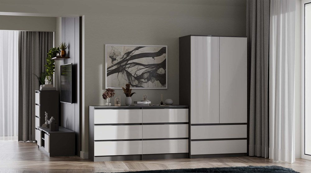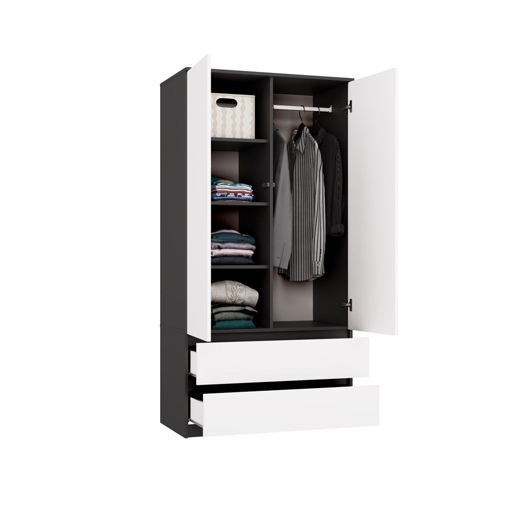Klædeskabet SS-90 er et praktisk møbel, der passer perfekt i soveværelset, garderoben, kontoret eller hjemmekontoret. Det giver plads til både tøj, dokumenter og overtøj, så alt kan opbevares organiseret og praktisk.