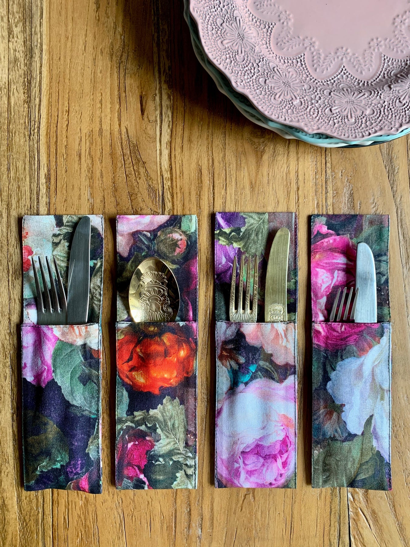 Gør borddækningen til en leg med denne charmerende bestikholder. Med en elegant sort baggrund og et stort, farverigt blomsterprint er den perfekt til at tilføre dit spisebord et ekstra pift. Hvem siger, at bestik ikke kan skabe et statement?