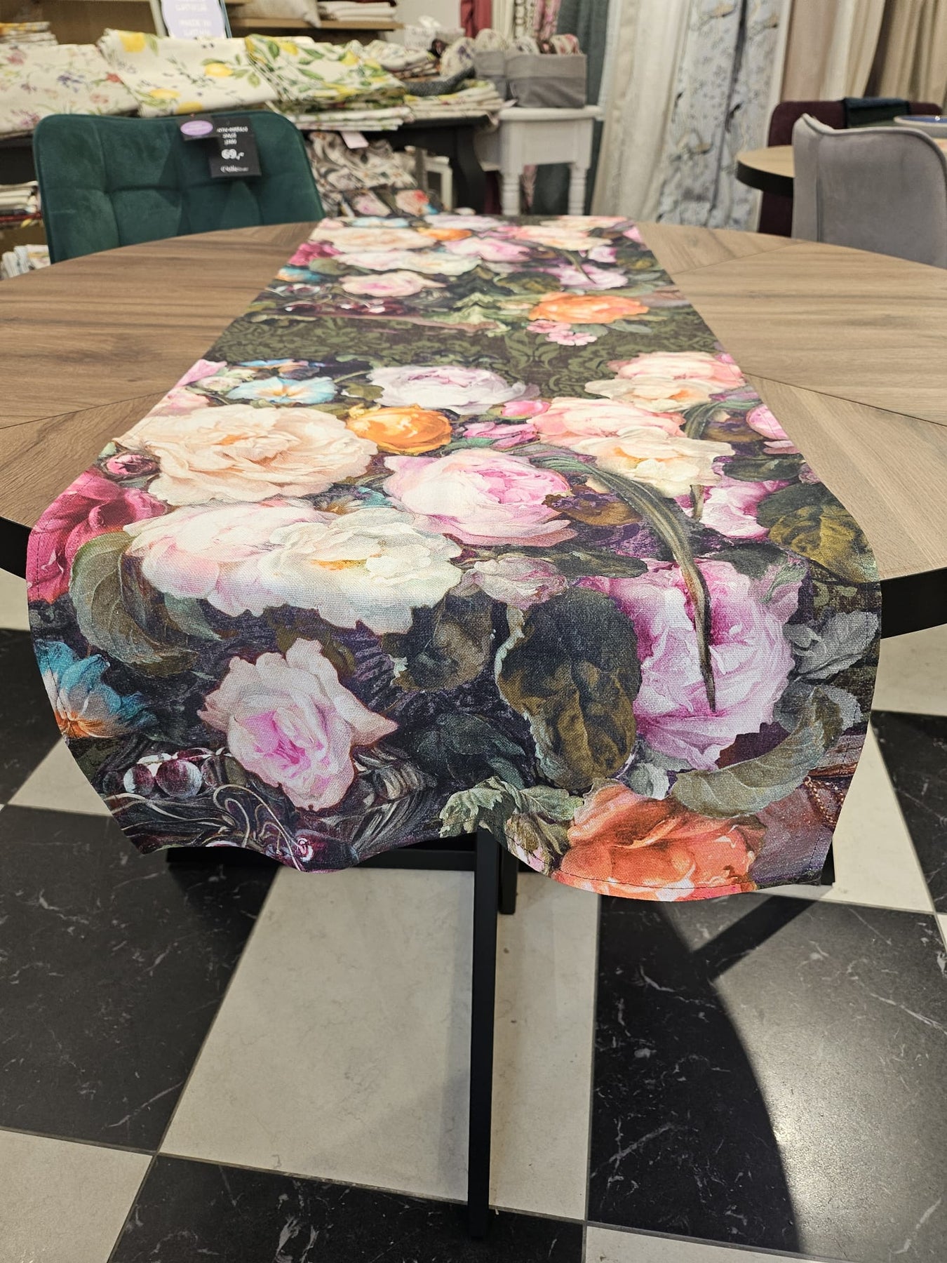 Giv dit spisebord et frisk pust med denne elegante bordløber fra vores "Francine Black"-kollektion. Det funktionelle, rektangulære design med et smukt vintage blomsterprint og fine kvaster vil lyse op i din spisestue og skabe en festlig stemning til alle dine måltider. Vi udvælger nøje de mest opdaterede designs og de bedste materialer, der er produceret i Europa, hvilket garanterer den højeste kvalitet i hvert eneste stykke.