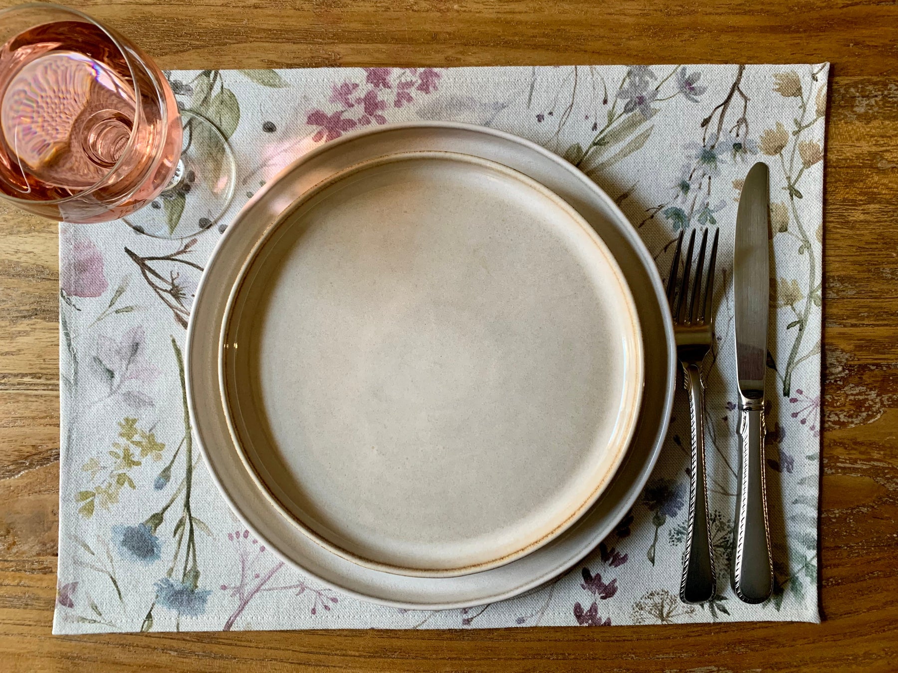Glem ikke at fuldende din borddækning med matchende grydelapper, duge, pudebetræk og andre boligtekstiler i dette fængslende blomsterdesign. Gå på opdagelse i vores butik og find flere produkter, der vil bringe charme ind i dit hjem.