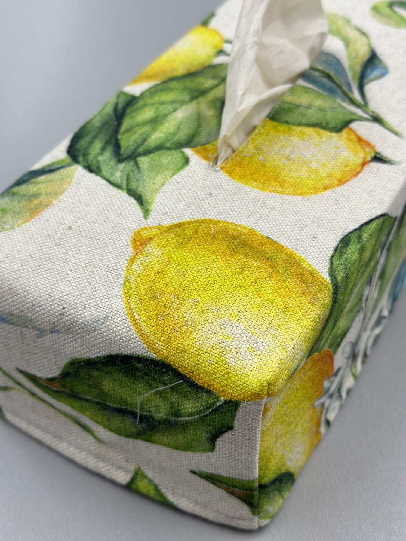 Sig farvel til kedelige tissueæsker og velkommen til et strejf af glæde! Dette charmerende betræk fra vores "Golden Pine"-kollektion tilfører et sprudlende og elegant udtryk til din stue, dit køkken eller badeværelse. Det flotte print med solgule citroner på en beige baggrund skaber et smil og en frisk stemning.
