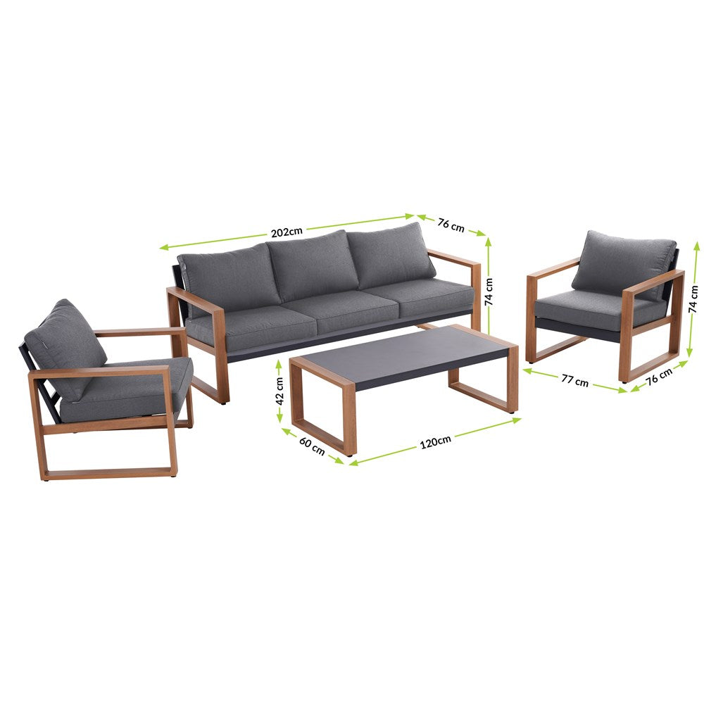 DUISBURG loungesættet kombinerer elegance, funktionalitet og komfort og er en investering i mange sæsoners afslapning. Skab en moderne og stilfuld loungezone i haven med et sæt, der både imponerer visuelt og leverer høj siddekomfort.