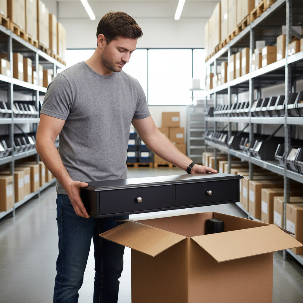 Udtræksskufferne er udstyret med stop og kan ikke trækkes helt ud, hvilket garanterer sikker brug. Derudover er denne hylde lavet af robust MDF, så den vil være med dig i mange år.