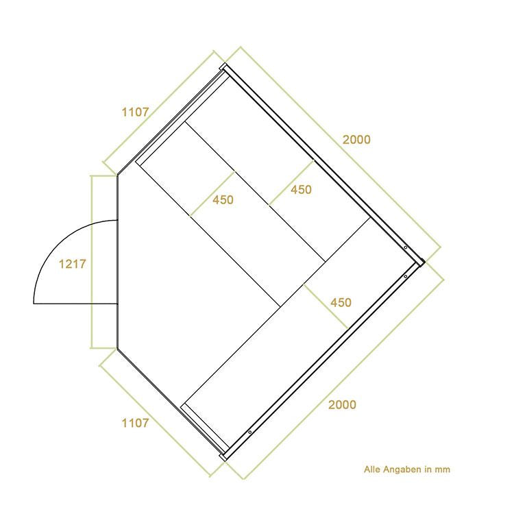 Pladsbesparende Mål: Med et grundmål på 200 x 200 x 200 cm forbliver hjørnesaunaen en pladsbesparende løsning, der udnytter rummet optimalt.