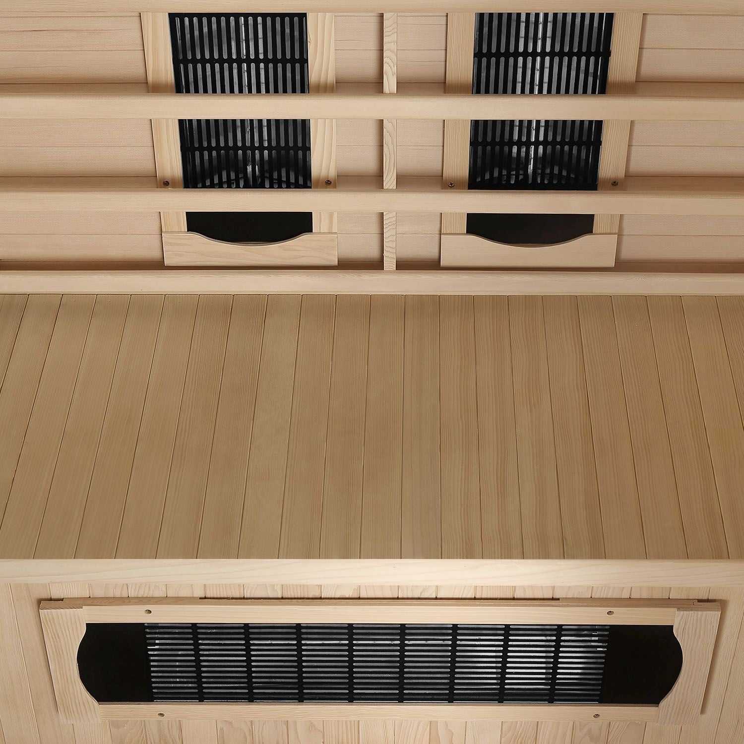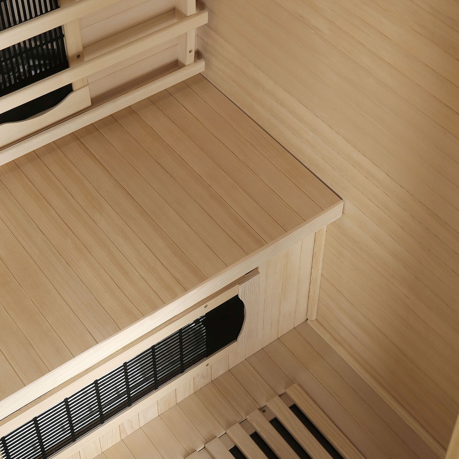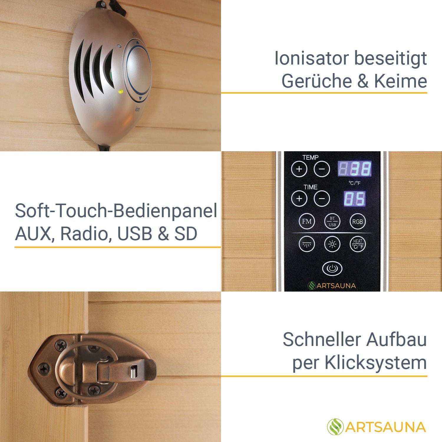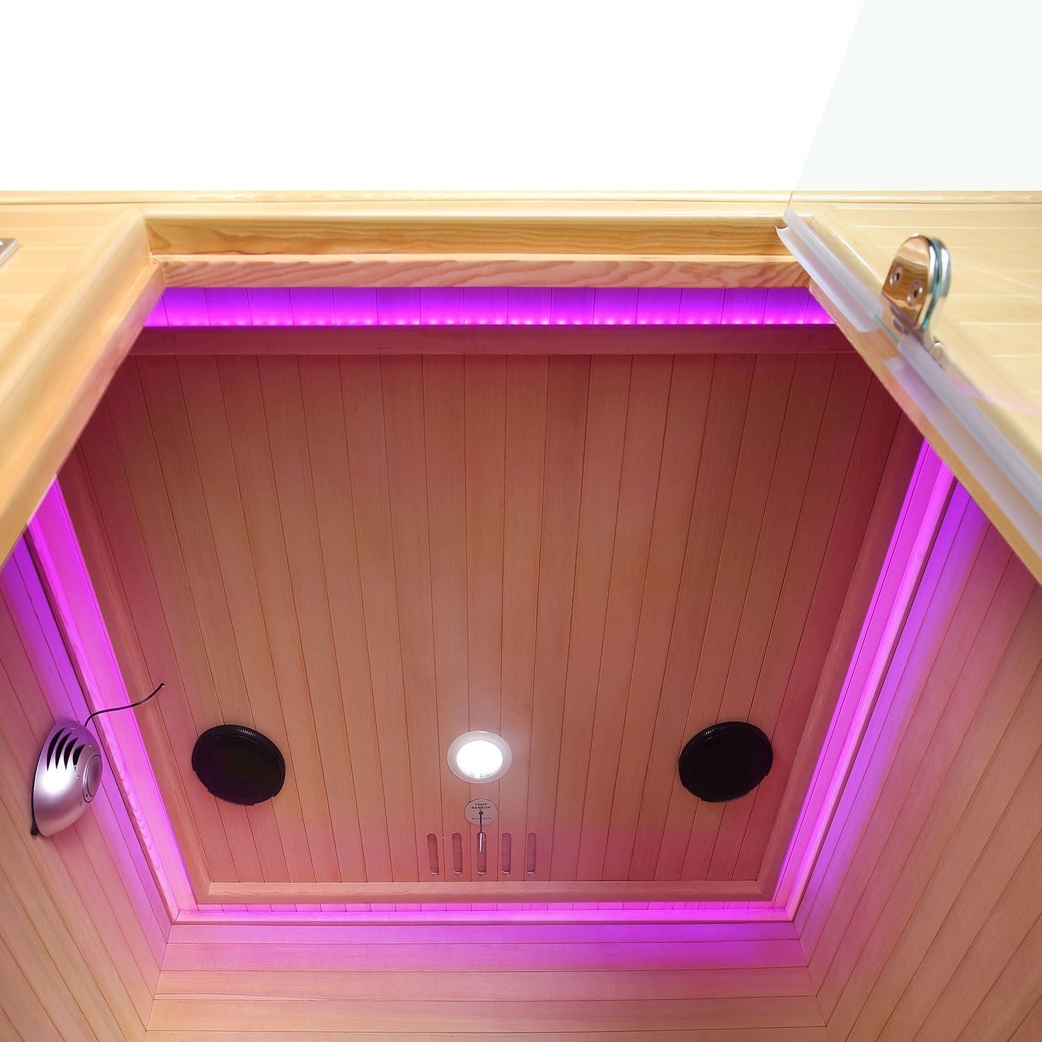 • Underholdning: Infrarødsaunaen er udstyret med et moderne HiFi-system. Læn dig tilbage og lyt til din yndlingsmusik via FM-radio, AUX-indgang eller USB/SD-kort.