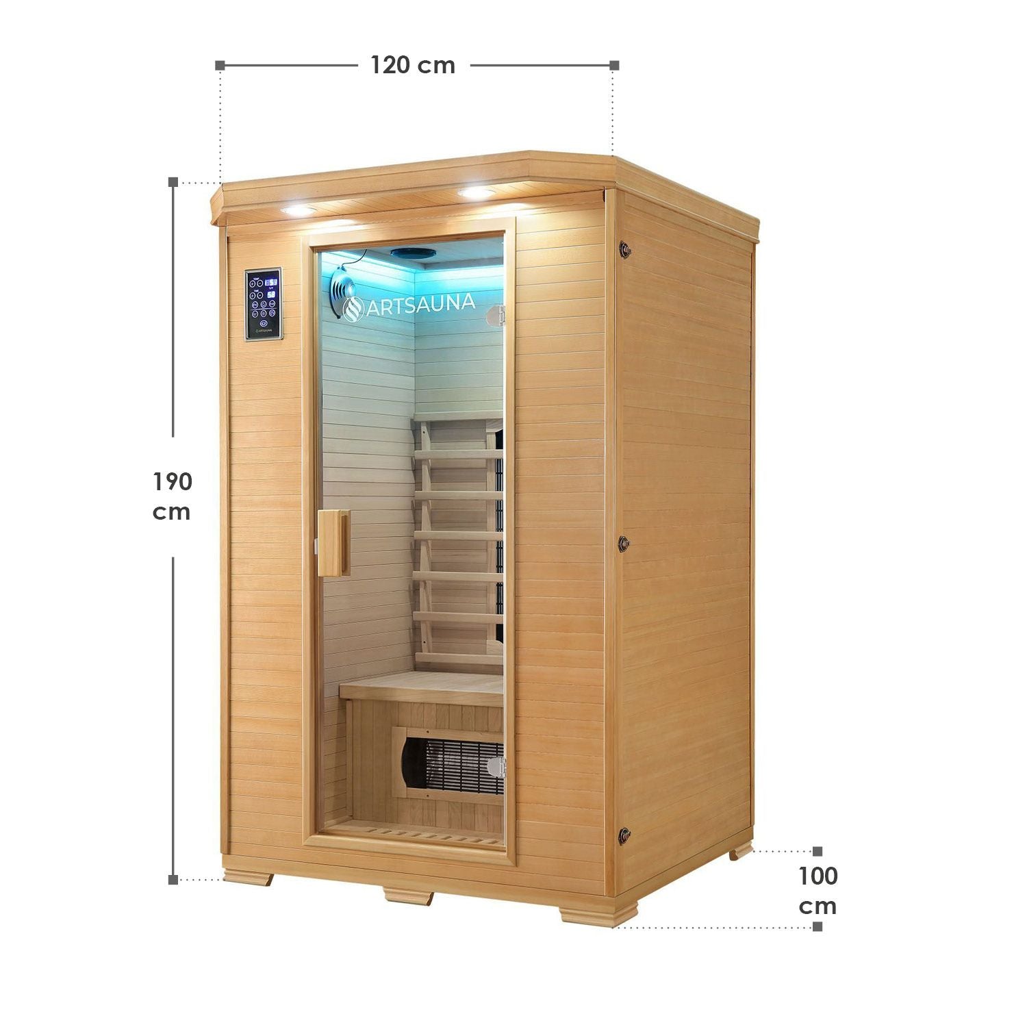 • Kompakte Mål: Med et grundmål på 120 x 100 cm forbliver infrarødkabinen pladsbesparende, så du nemt kan skabe din egen lille wellness-oase derhjemme.