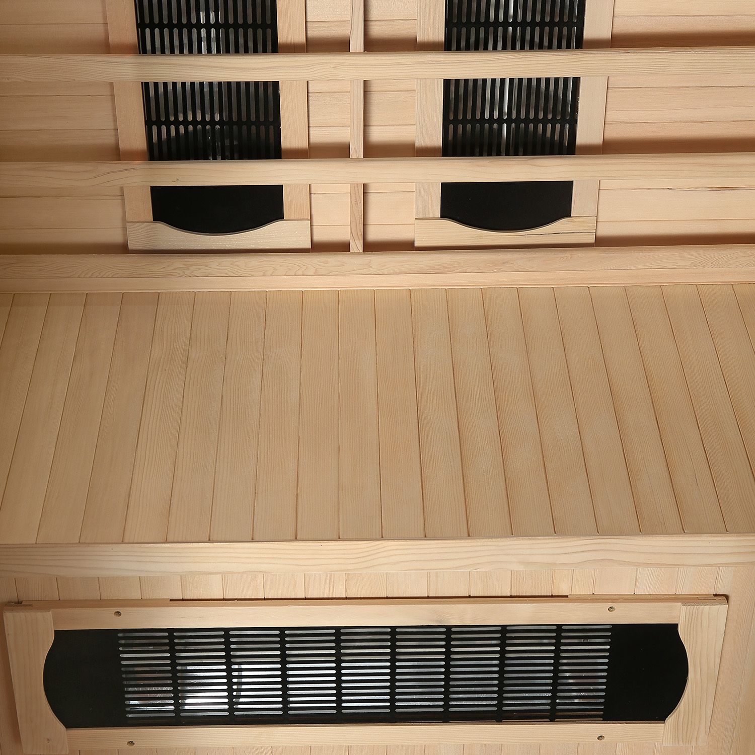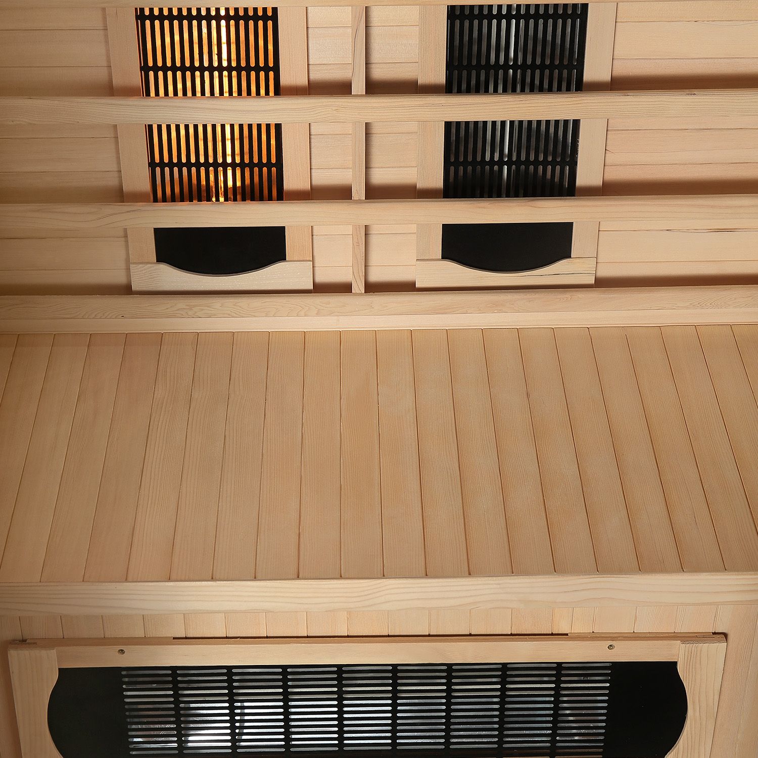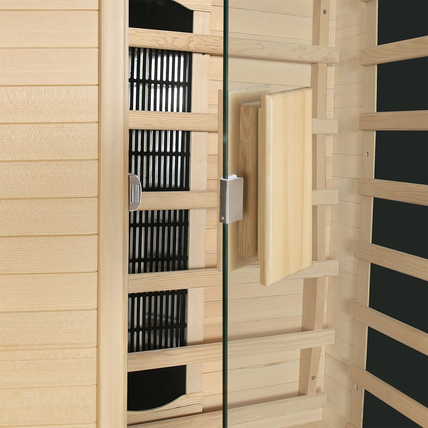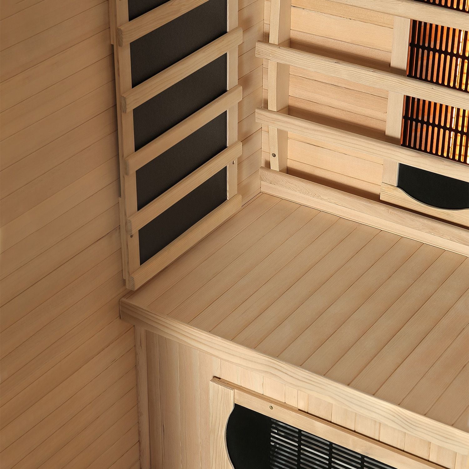 • Behageligt Rumklima: Vi bruger det lyse træ fra Hemlock-gran til vores infrarødkabiner. Denne specielle træsort reflekterer den varme infrarødstråling og holder den inde i kabinen. Sammen med granens vandafvisende egenskab skaber dette et behageligt indeklima.