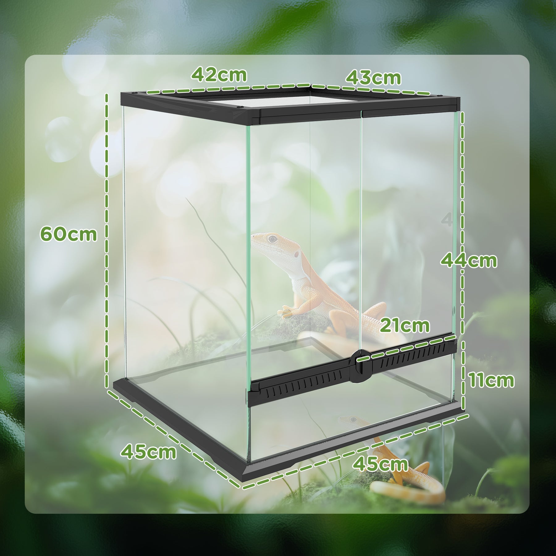 Giv dine skællede kæledyr et smukt hjem med dette krybdyrterrarium. Den rummelige 120-liters foderkasse med 360° panoramaudsigt tilbyder et perfekt miljø for firben, skildpadder eller slanger. Sikkerhed og komfort er i højsædet med flugtsikre netlåg og praktiske ventilationsåbninger, så dine små venner vil føle sig hjemme her!