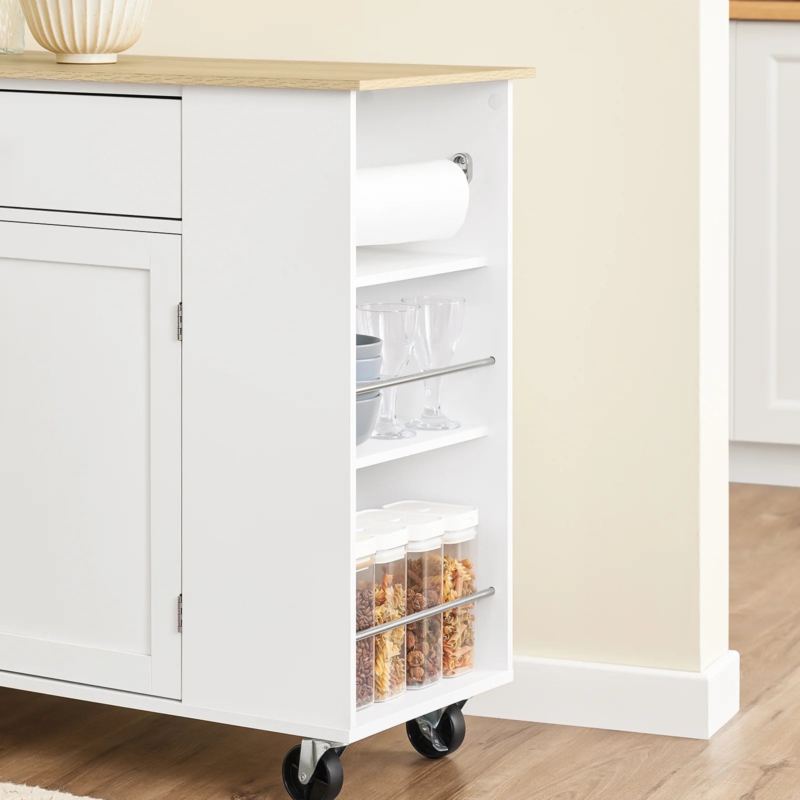 Mangler du en mobil løsning til opbevaring, servering og ekstra arbejdsplads? Denne stilfulde, fritstående køkkenvogn kombinerer moderne design med praktisk funktionalitet, perfekt til både dit køkken og udendørsområder.