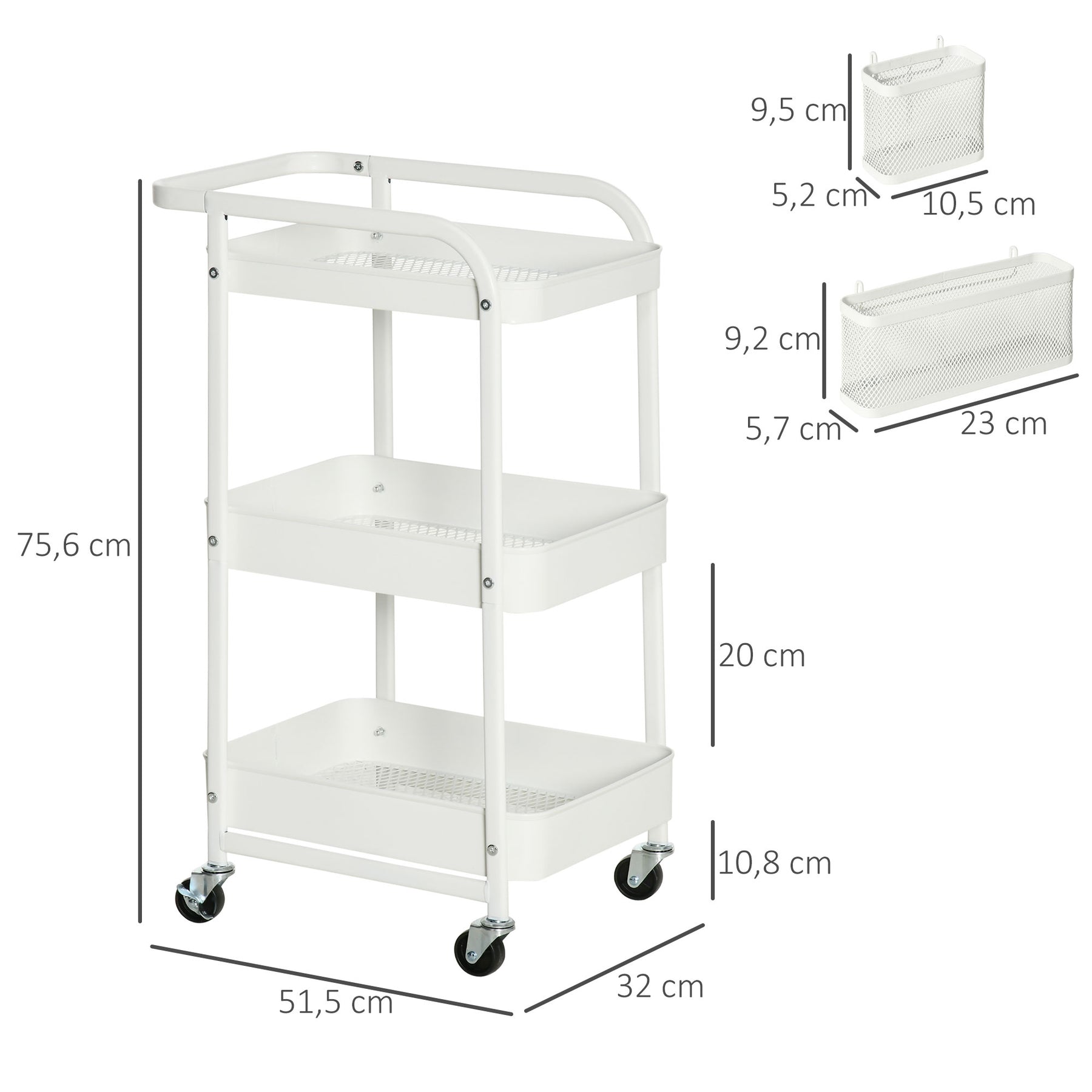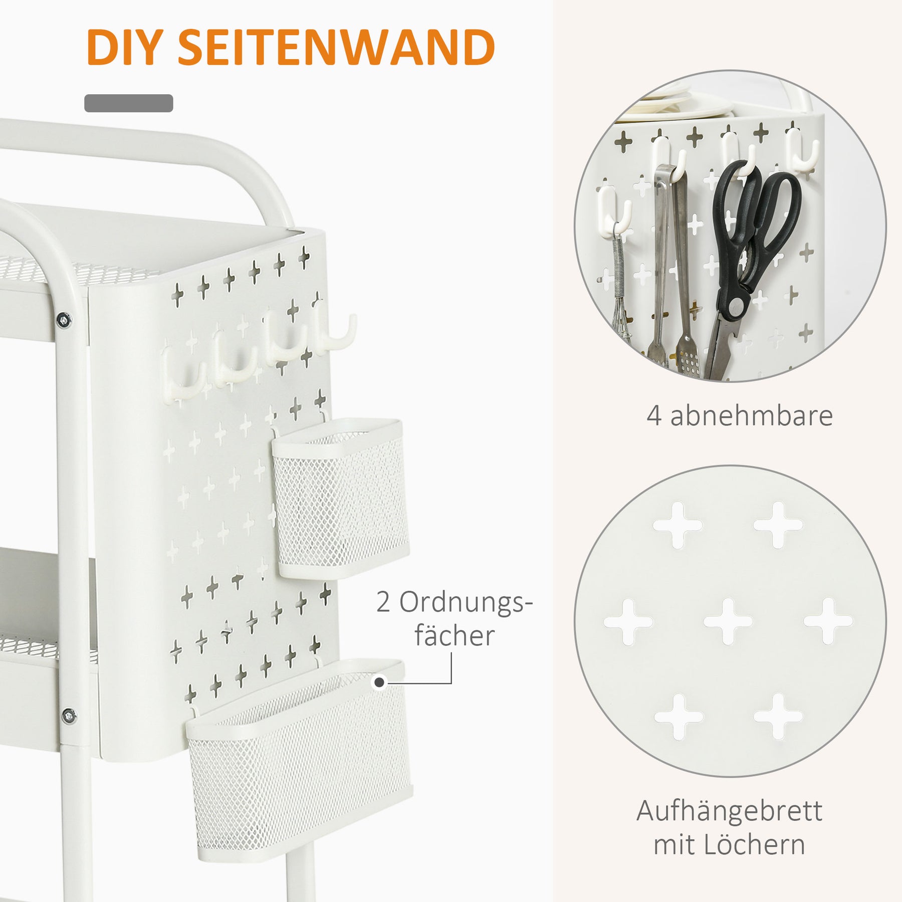 Køkkenvogn med hulplade, håndklædeholdere og opbevaringskurve, 51,5 cm x 32 cm x 75,6 cm, hvid