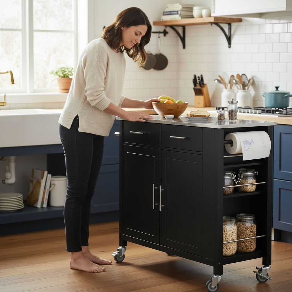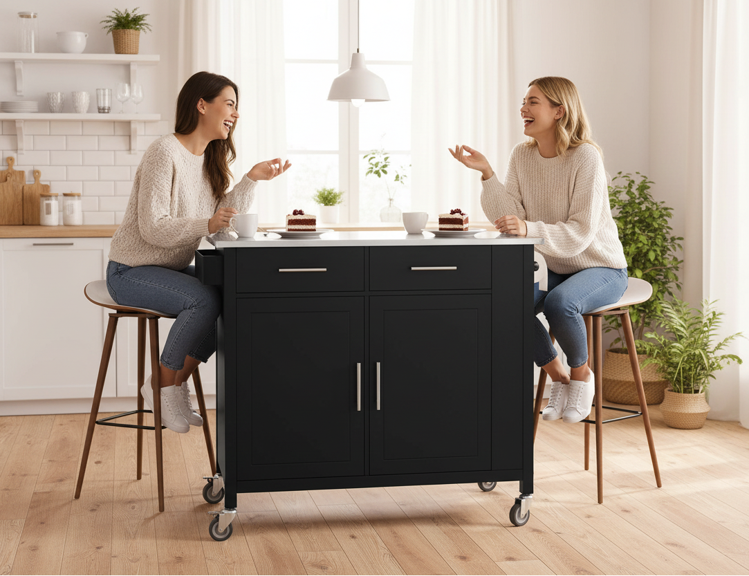 Den er fritstående og nem at flytte, så dit køkken kan tilpasses opgaven – ikke omvendt. Brug den som ekstra arbejdsflade, serveringsbord eller fleksibel station, når der er pres på pladsen.